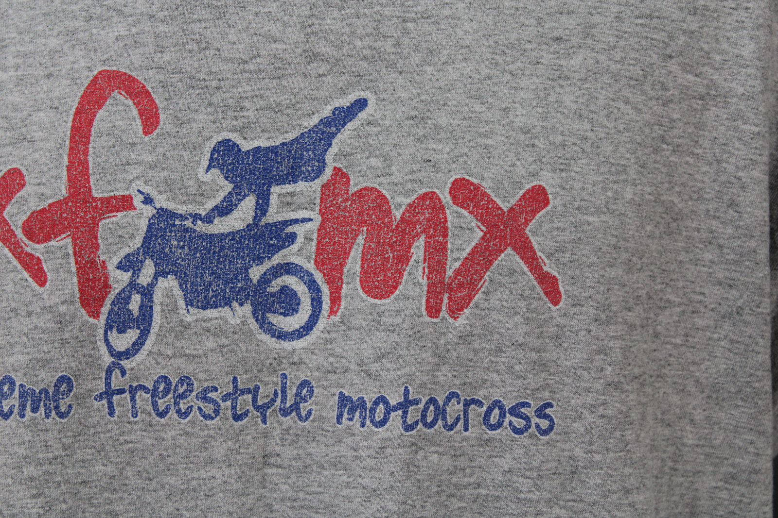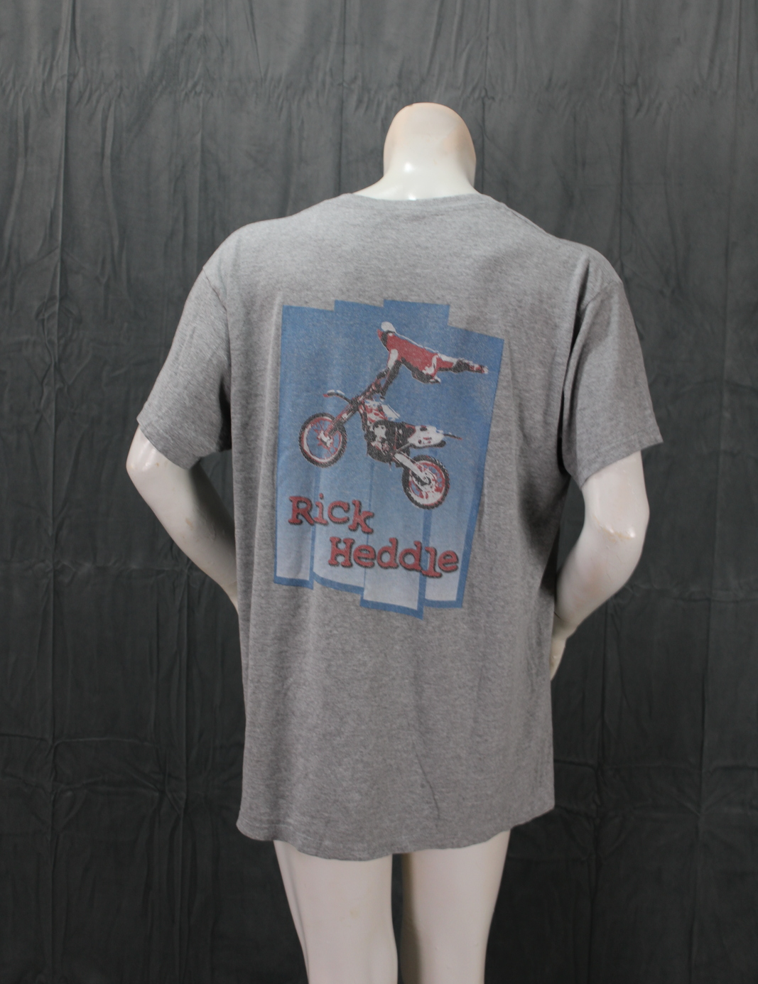 Up for sale is a vintage graphic t-shirt. It has a grey base colour with an extreme motocross graphic screened across the front of the shirt. The back of the shirt has a photo graphic of Rick Heddle doing a freestyle motocross trick screened on. What a great vintage shirt do not miss out on it.