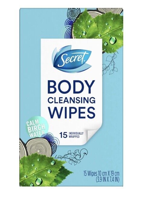 Secret Body Cleansing Wipes, 15 Individually Wrapped Wipes, Calm Birch Water