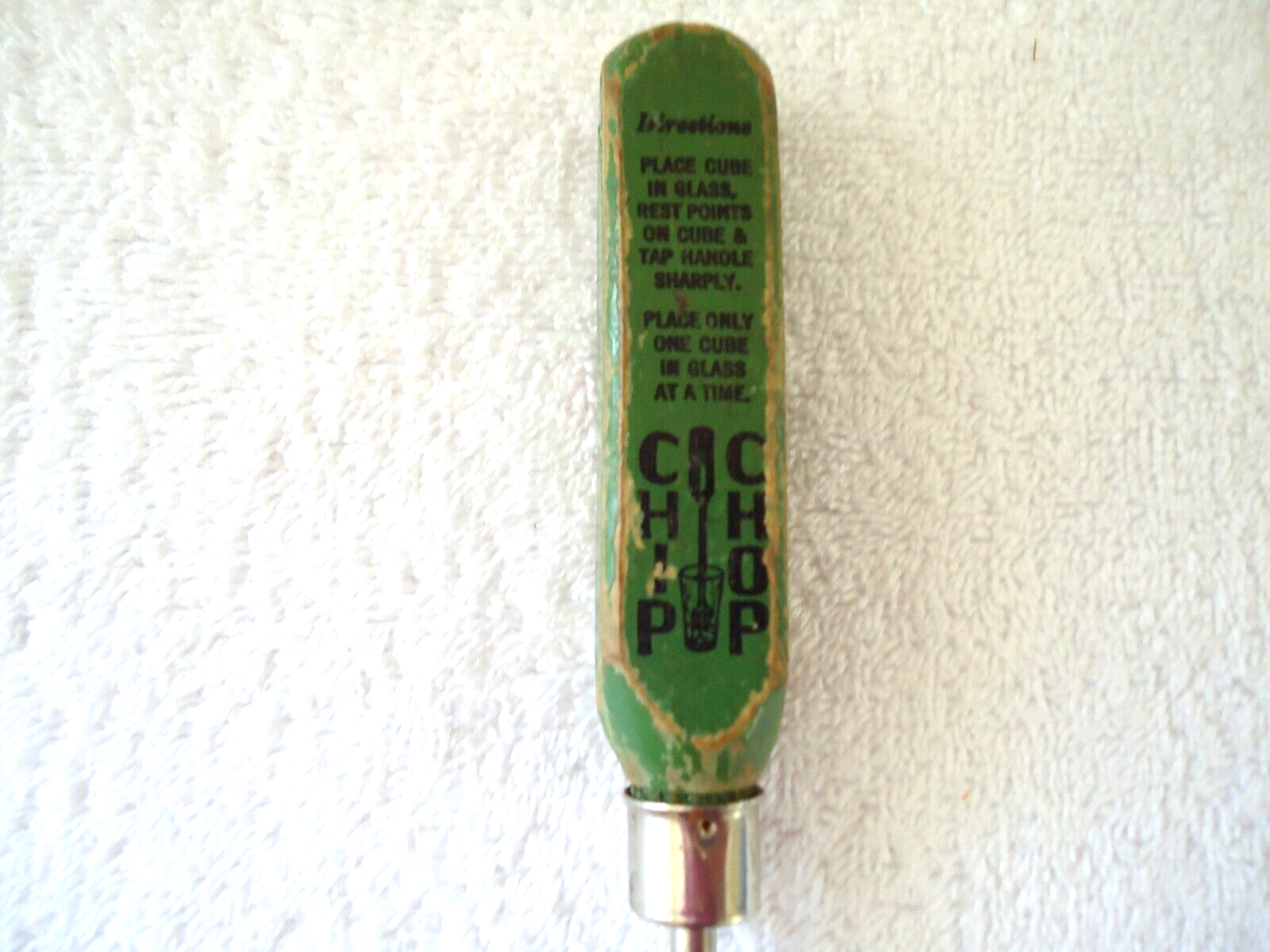 Here is a Vintage Chip Chop Spring Loaded Ice Cube Chopper " GREAT COLLECTIBLE ITEM ".This is a must for any collector,or decorator wanting that vintage retro look.If you have any concerns or questions about this item(s) please ask before bidding / purchasing because this item(s) is being SOLD AS IS.Thank You.-(PC85)