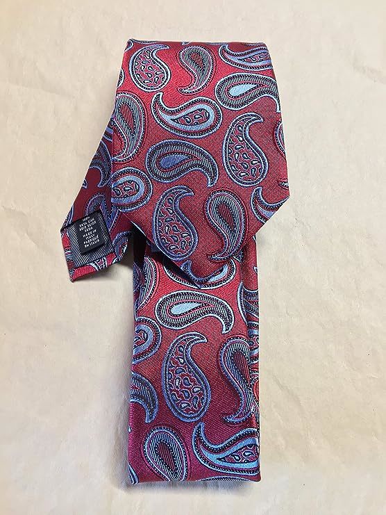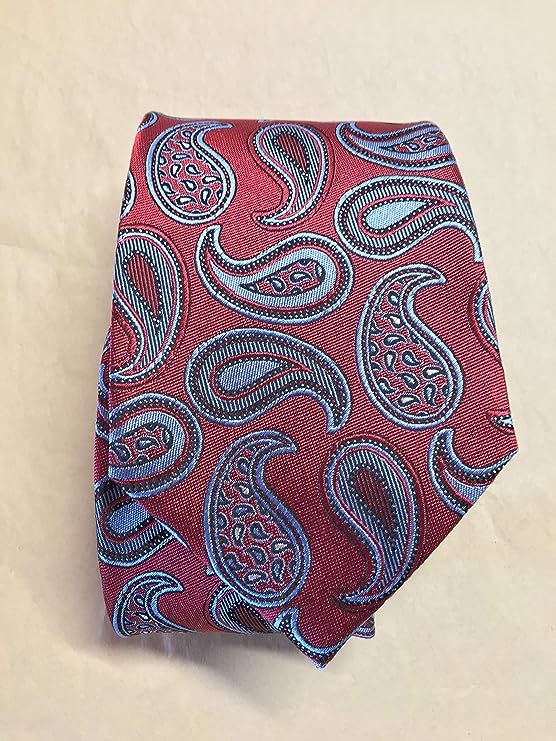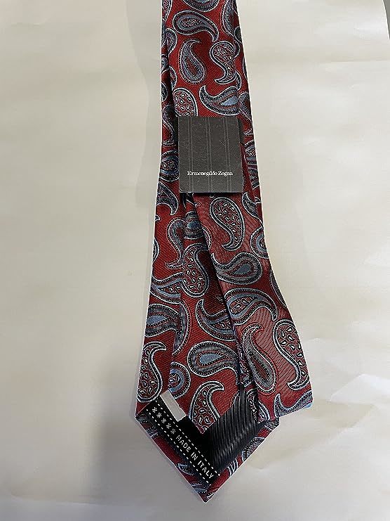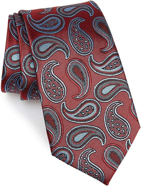 ERMENEGILDO ZEGNA MEN'S RED/LIGHT BLUE METALLIC PAISLEY SILK TIE
