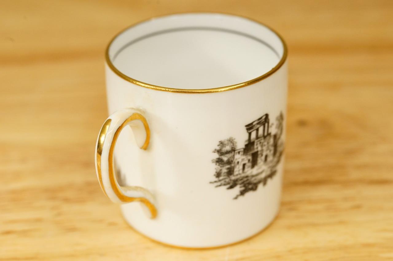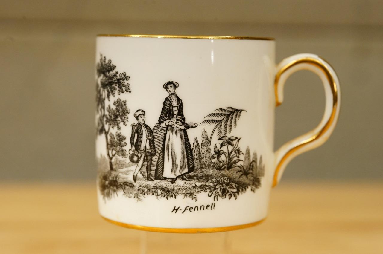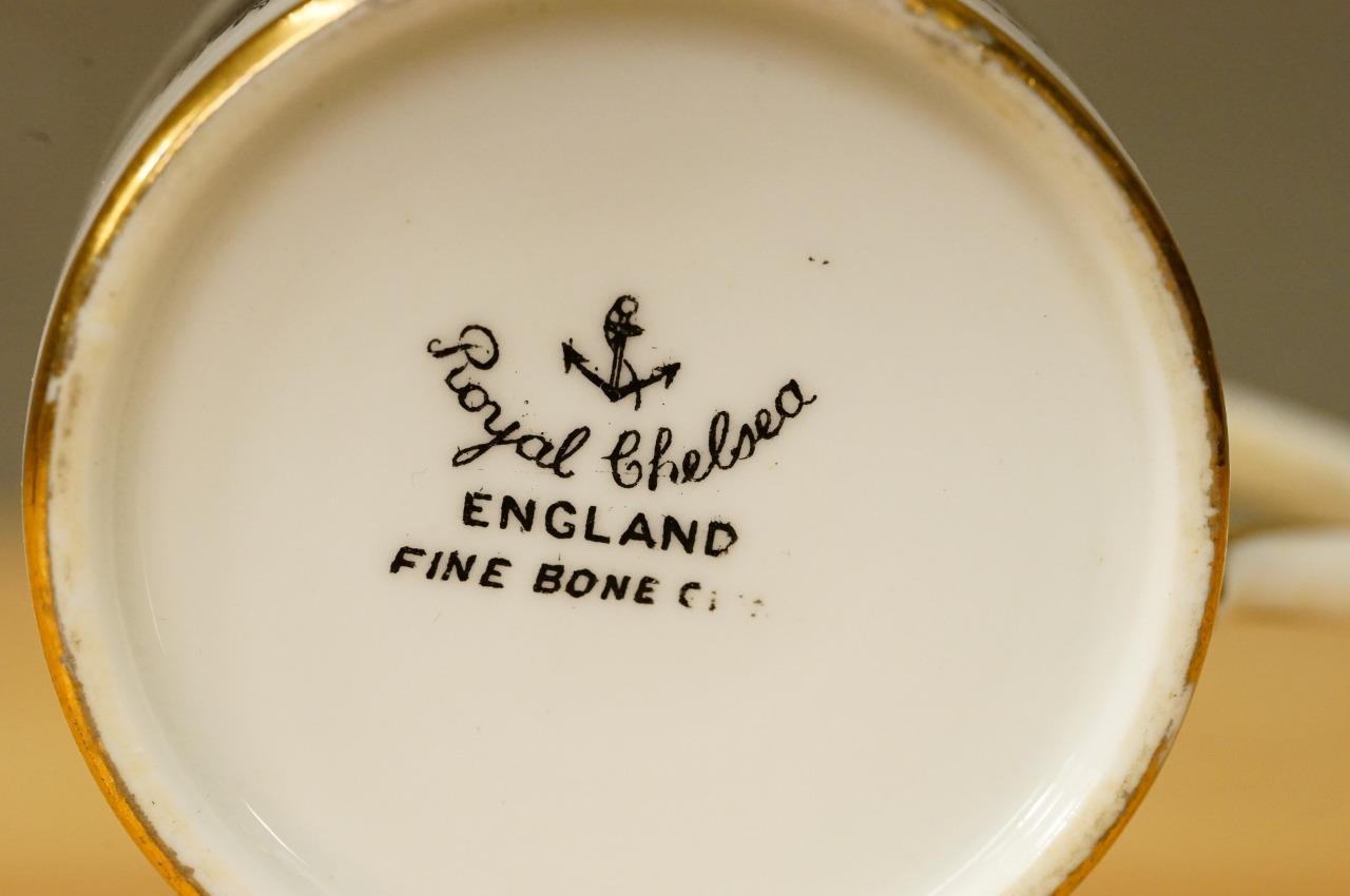 VINTAGE English China ROYAL CHELSEA Flat Demitasse Cup RHC27. The artist is H Fennell. Signed on the base. No chips or cracks. No smoke or pet odor. Bright gold trim. The cup is 2-3/8" tall.