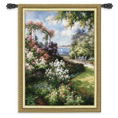 40x53 MORNING RETREAT Floral Garden Ocean Sea Tapestry Wall Hanging