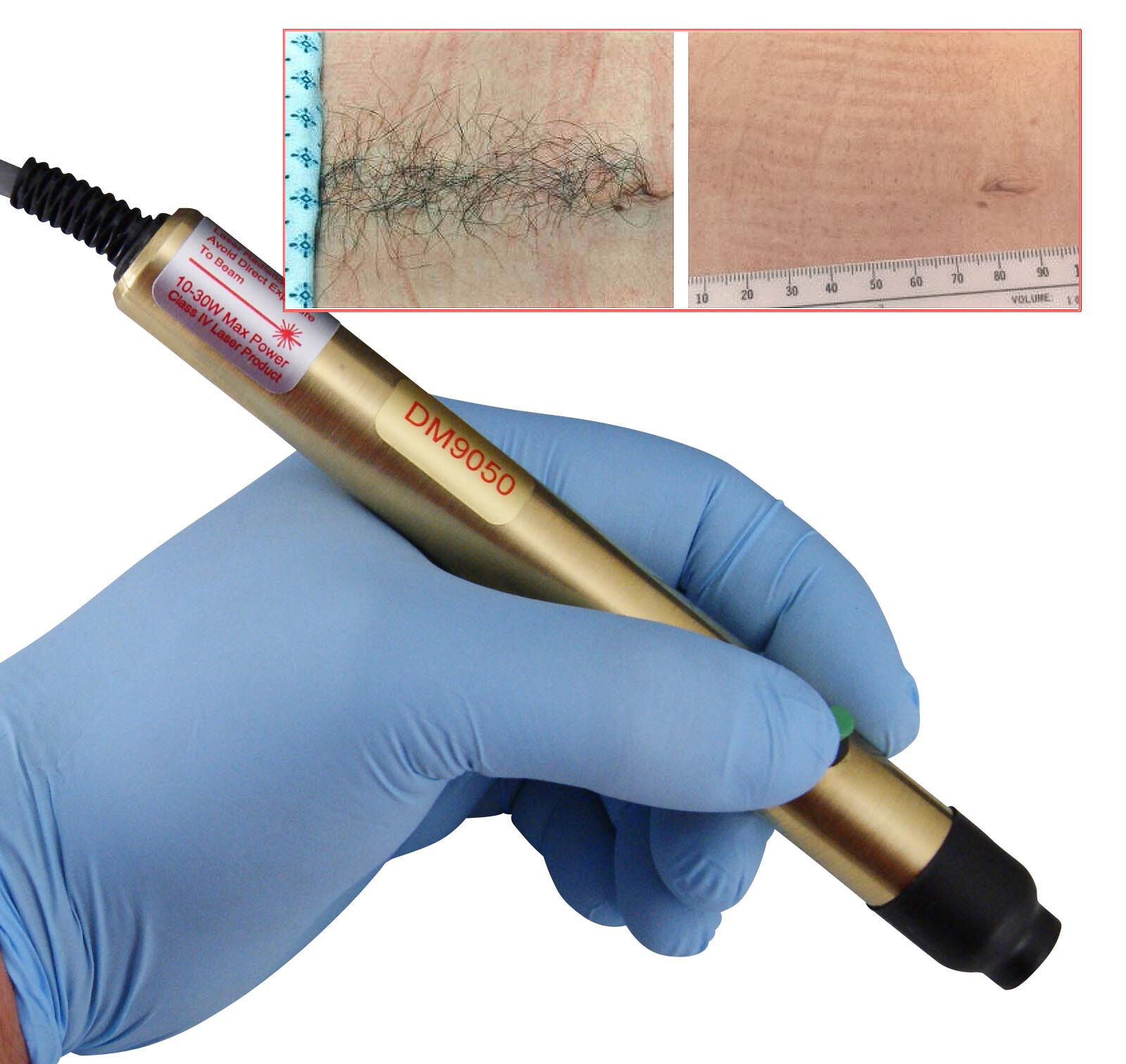 The DM-9050 has a full 180jcm2/sec. at 808nm making it one of the most powerful pin-point laser epilators you can buy. A convenient thumb switch activates the high-intensity pulses for the rapid destruction of hair follicle tissues and fungal infections.