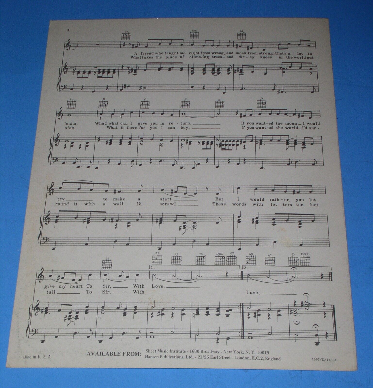 Lulu Sheet Music To Sir With Love Vintage 1967 Screen Gems Sidney Poitier