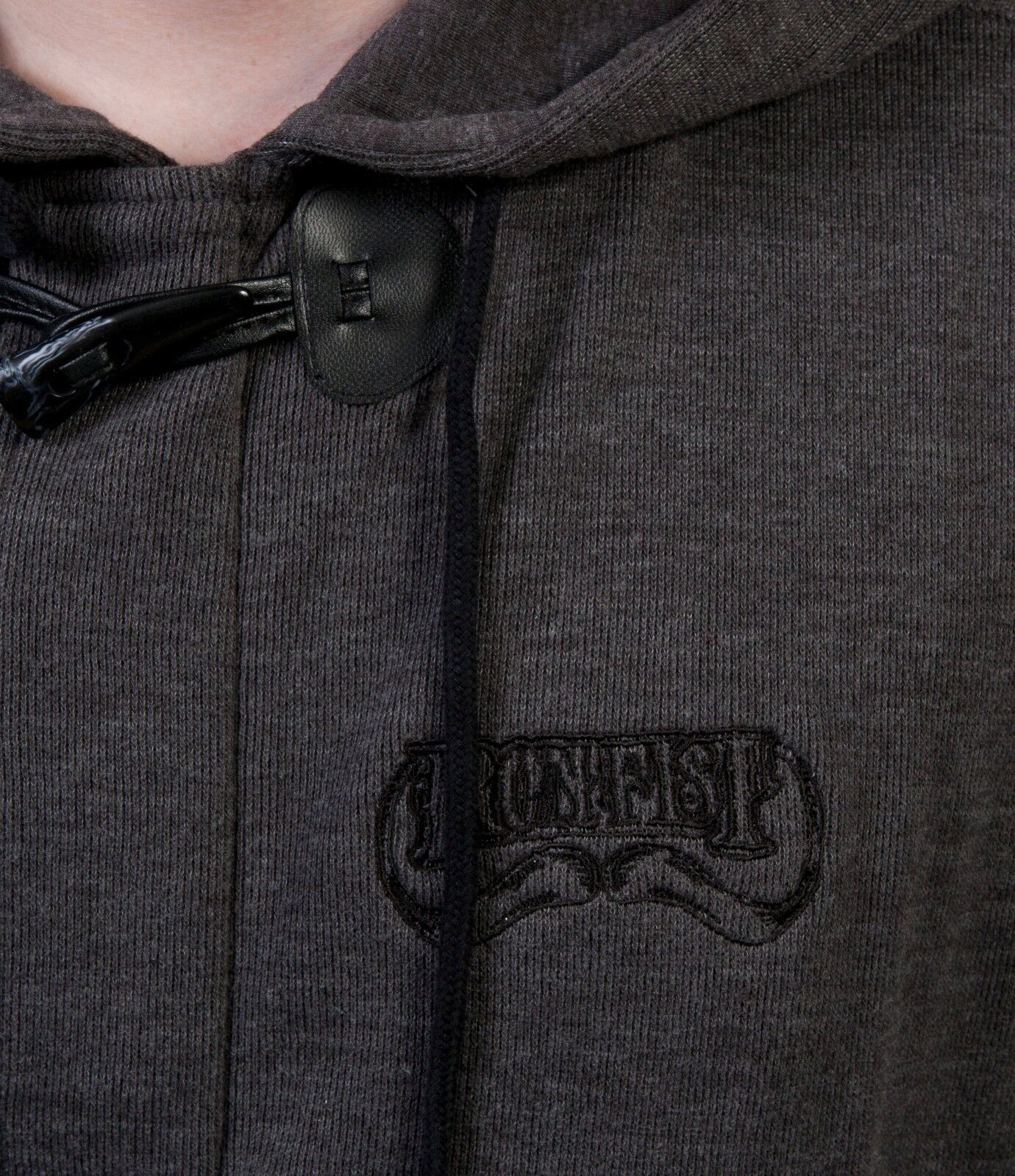 Iron Fist Mens Melcher French Rib Burnt Charcoal Hoodie Skull Moustache NWT