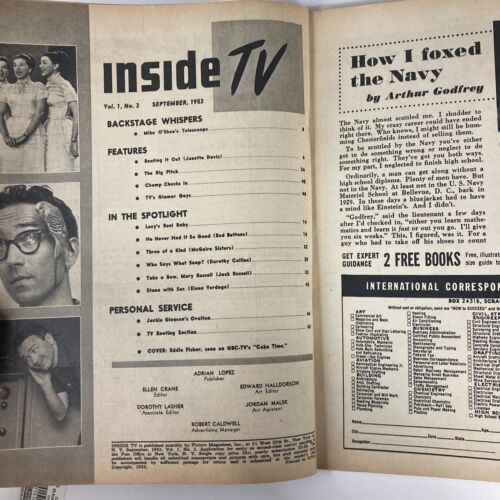 VTG Inside TV Magazine September 1953 Vol 1 #3 Eddie Fisher No Label