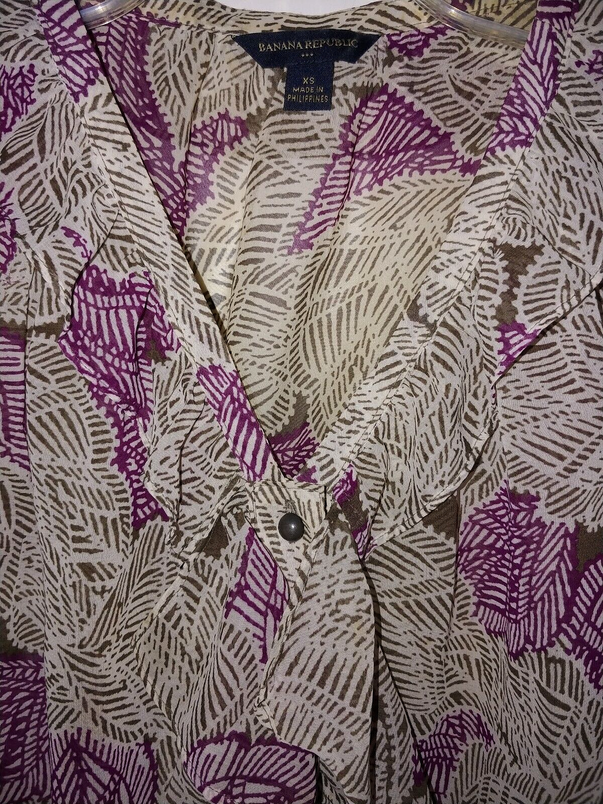 THIS IS A LOVELY LADIES BANANA REPUBLIC SLEEVELESS V-NECK BUTTON TOP IN A SIZE XS. IT IS VINTAGE (5/2011) BUT NEVER WORN.