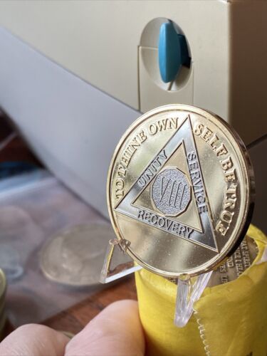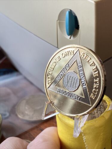 8 Year AA Medallion Gold Plated Large 39mm Sobriety Chip
