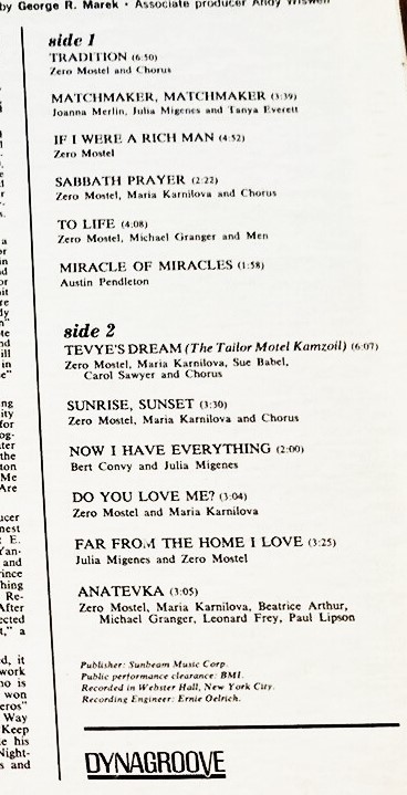 Fiddler On The Roof, Zero Mostel In Original Broadway Cast Album, Jerry Bock