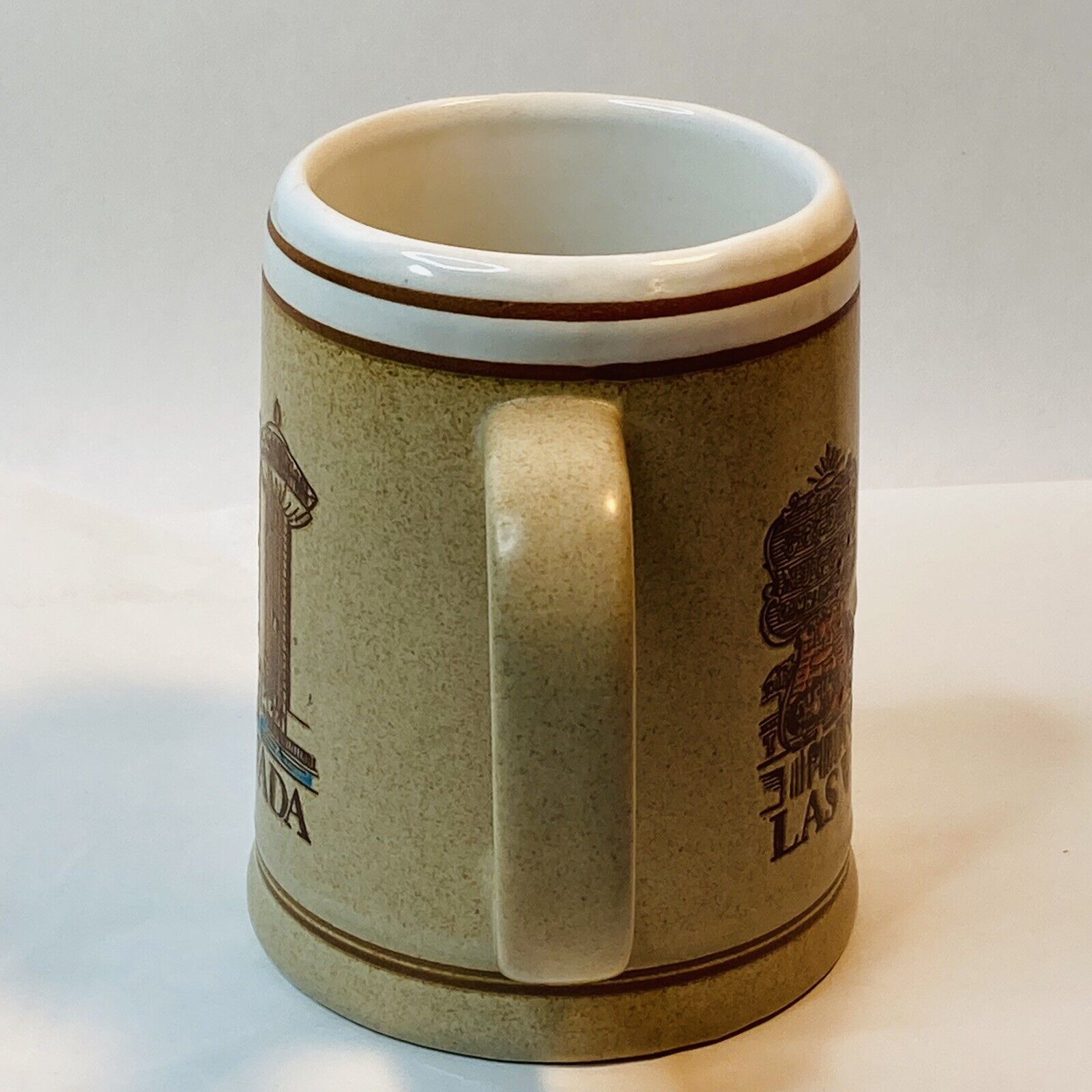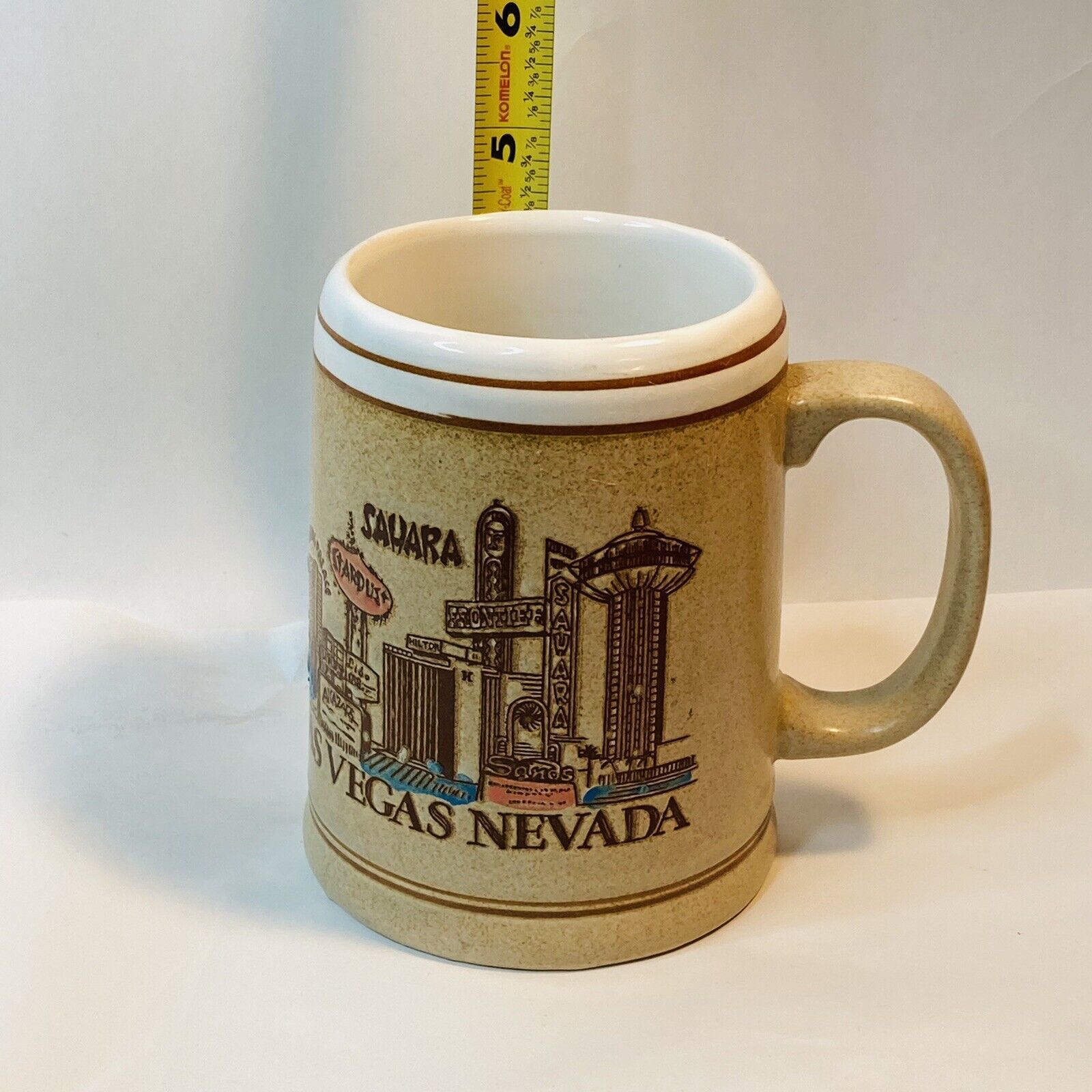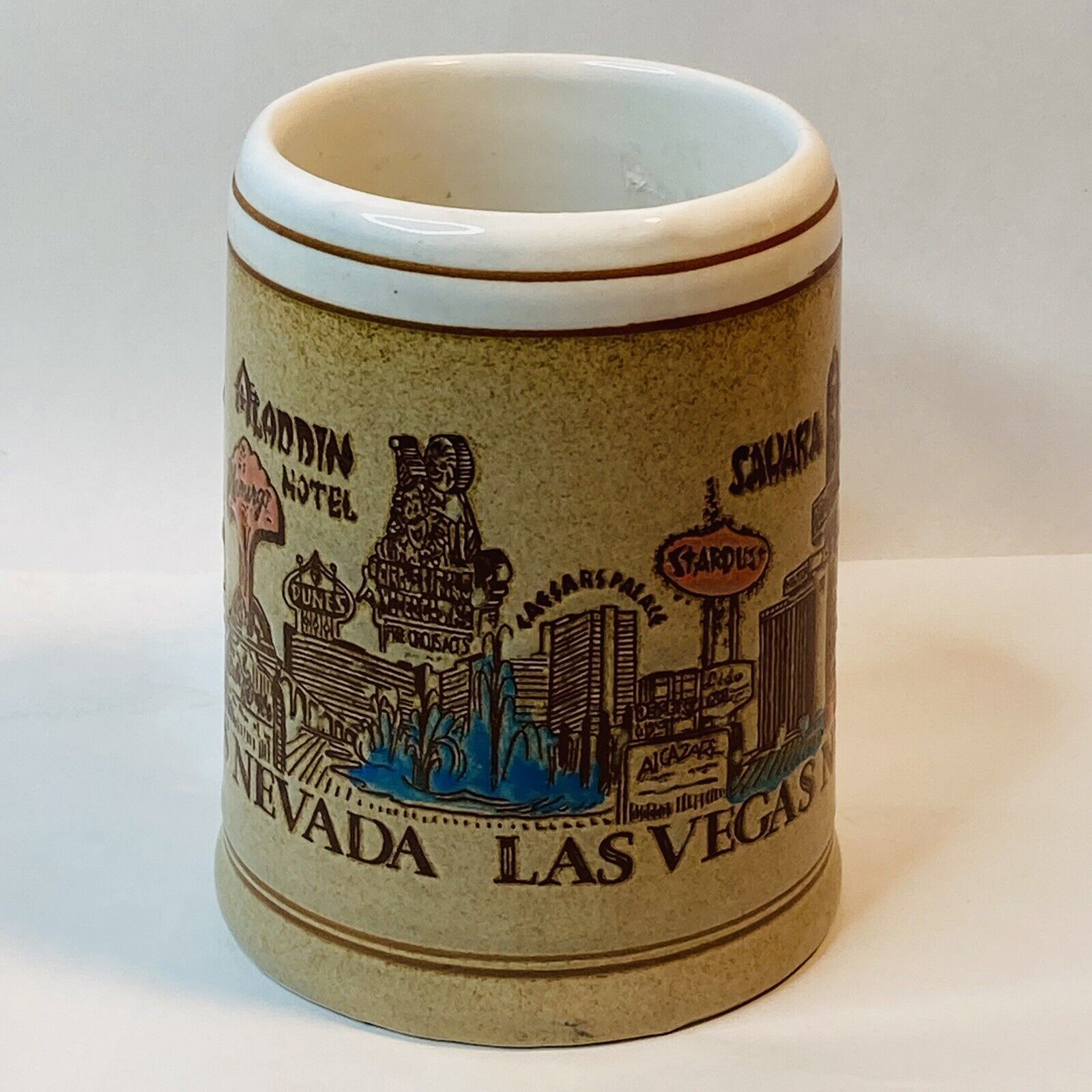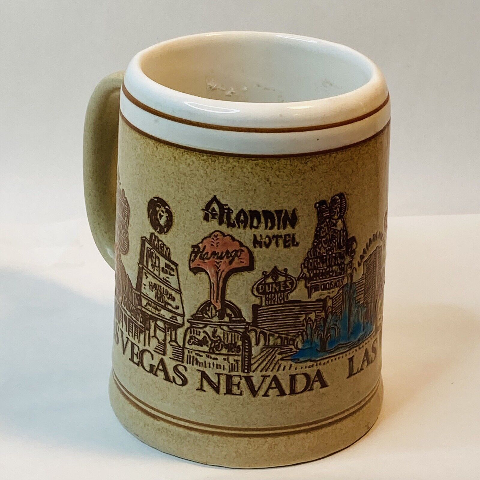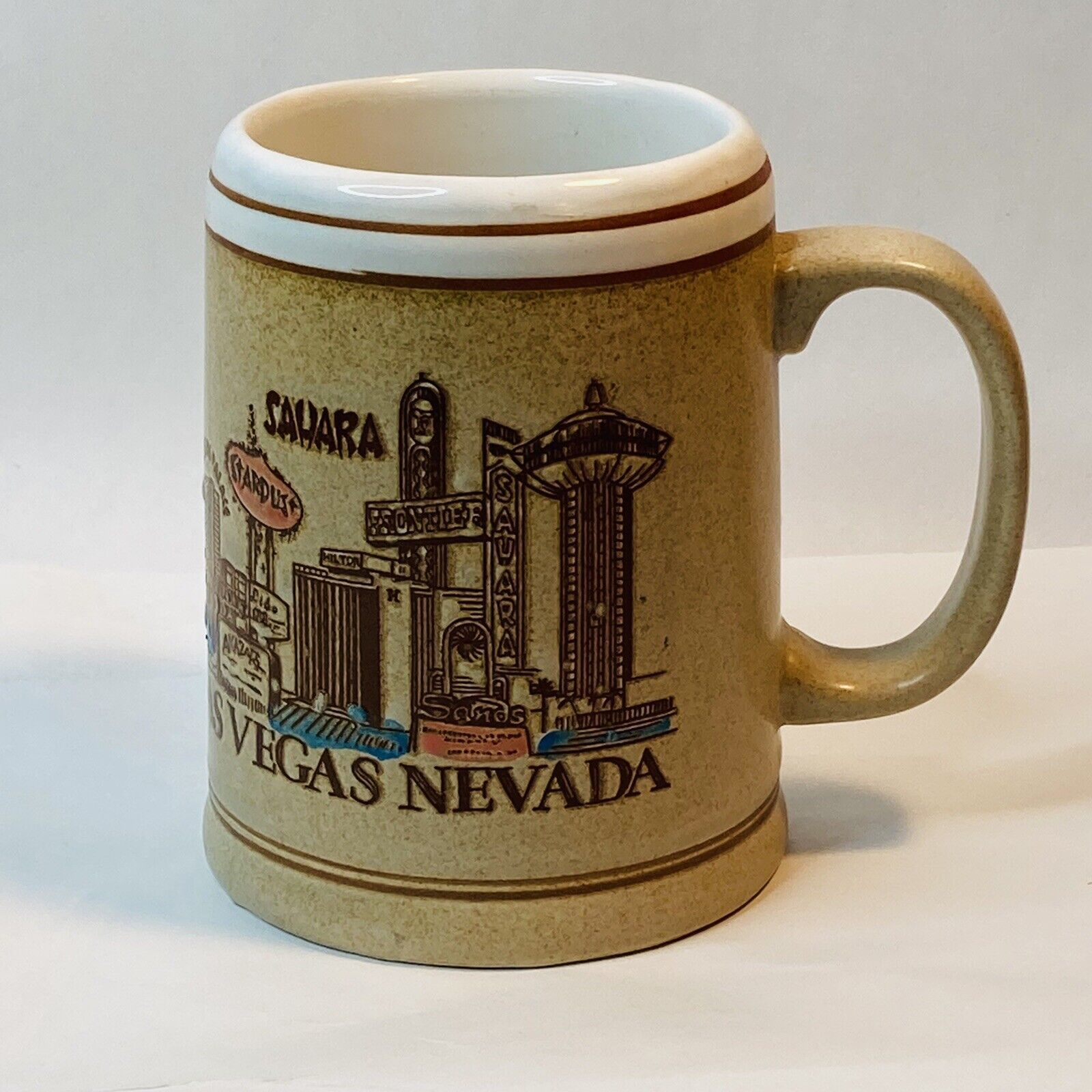 Vintage Old RARE Coffee Mug Cup Las Vegas Nevada NV Brown Tan Creme Hotel Strip