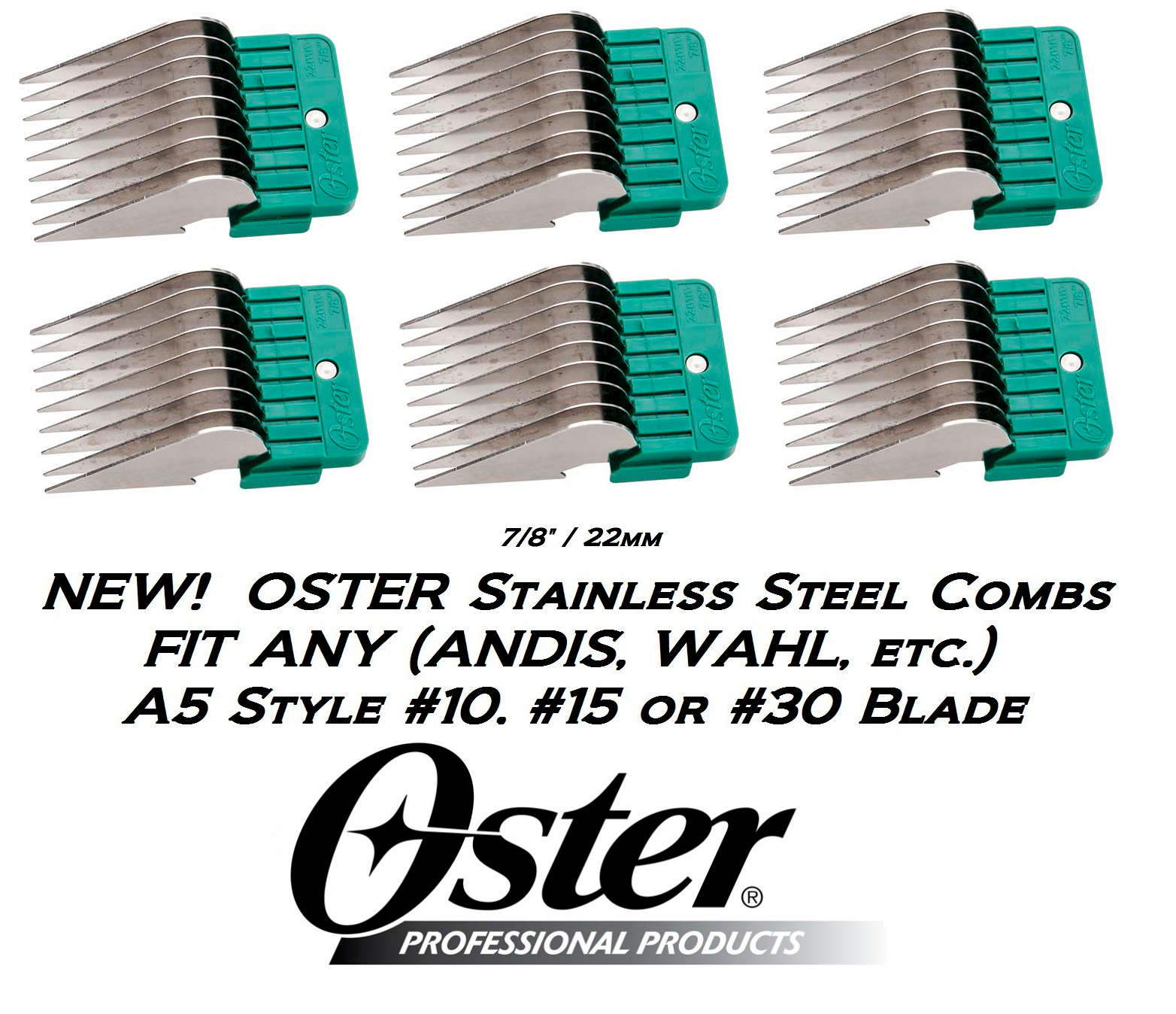 6 OSTER STAINLESS STEEL Blade GUIDE 7/8" 22mm COMB*Fit A5,Wahl KM5 KM10 Clipper