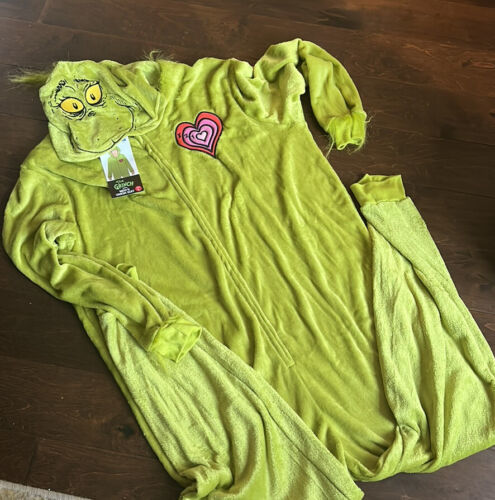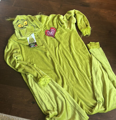 New Christmas Pajamas Mens Dr. Seuss Grinch Union Suit Size Large Plush.