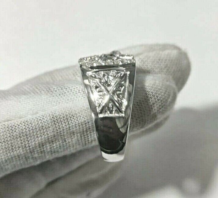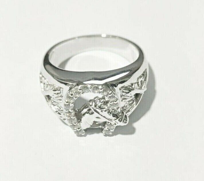 Herren Hufeisen Ring IN 14K Weiss Gold 925 Silber Mit Labor Erstellt Diamant