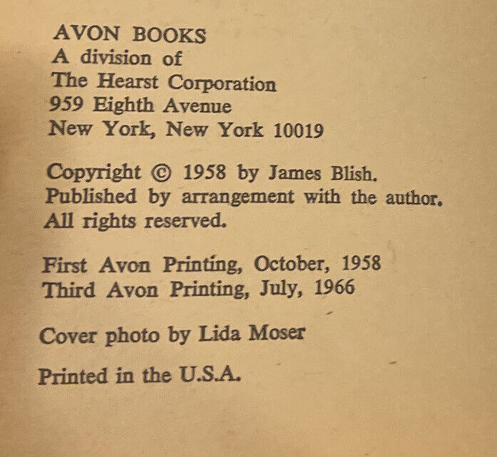 James Blish - THE TRIUMPH OF TIME - Avon 1966 3rd Printing Paperback Book.