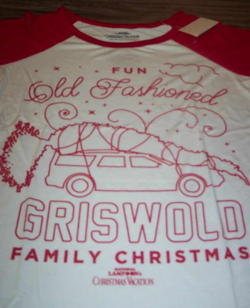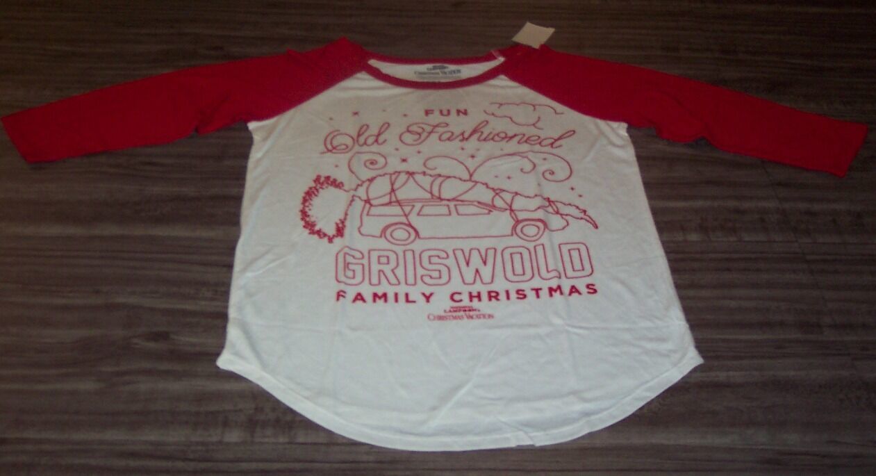 This is a VINTAGE STYLE Women's TEEN National Lampoon's CHRISTMAS VACATION FUN OLD FASHIONED GRISWWOLD FAMILY CHRISTMAS T-shirt. It is a size MEDIUM and it is NEW with the tag. It is 19 inches from armpit to armpit and 28 inches in length. It has the 70's style 3/4 length sleeves. Combine auctions to save on shipping. D2AG