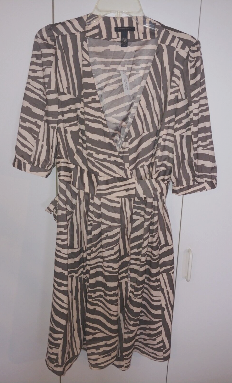 THIS IS A CUTE LADIES BANANA REPUBLIC SHORT-SLEEVED OPEN WRAP DRESS IN A SIZE 6. THIS IS NEW, WITH TAGS ATTACHED.