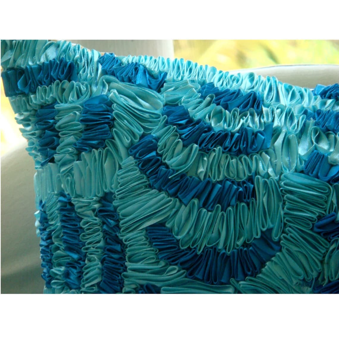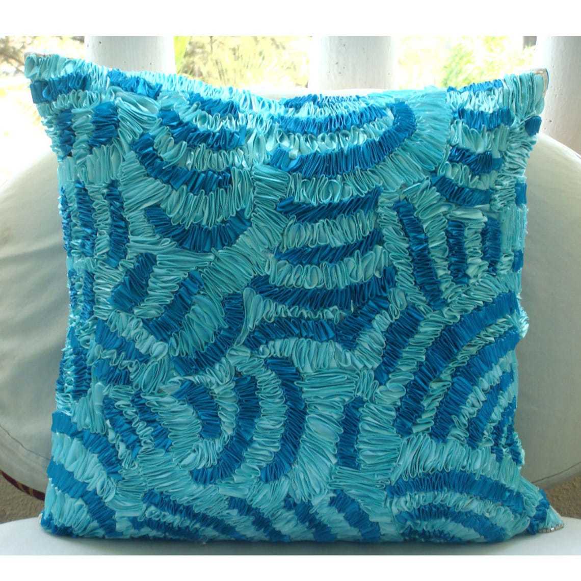 Aqua Ripples is an exclusive 100% handmade decorative pillow cover designed and created with intrinsic detailing. A perfect item to decorate your living room, bedroom, office, couch, chair, sofa or bed.