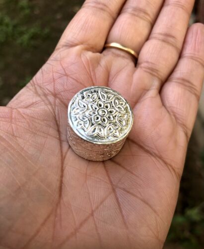 2Pc X 925 Silver Handmade Trinket Kajal Casket Jewelry Box Round 2 cm dia 5.8 gm