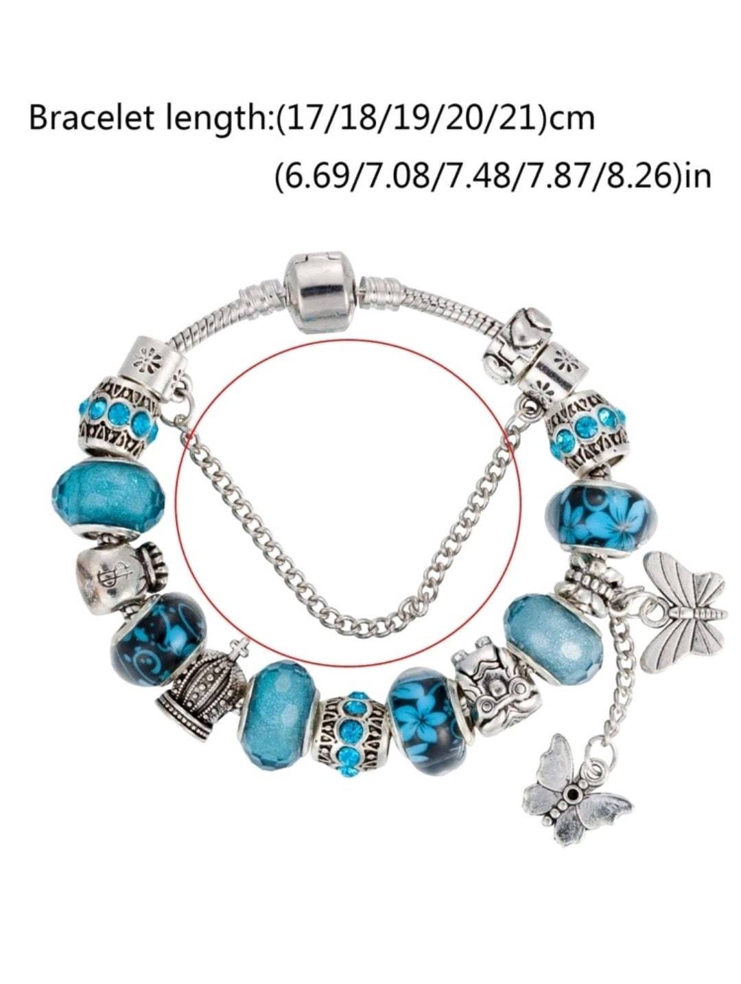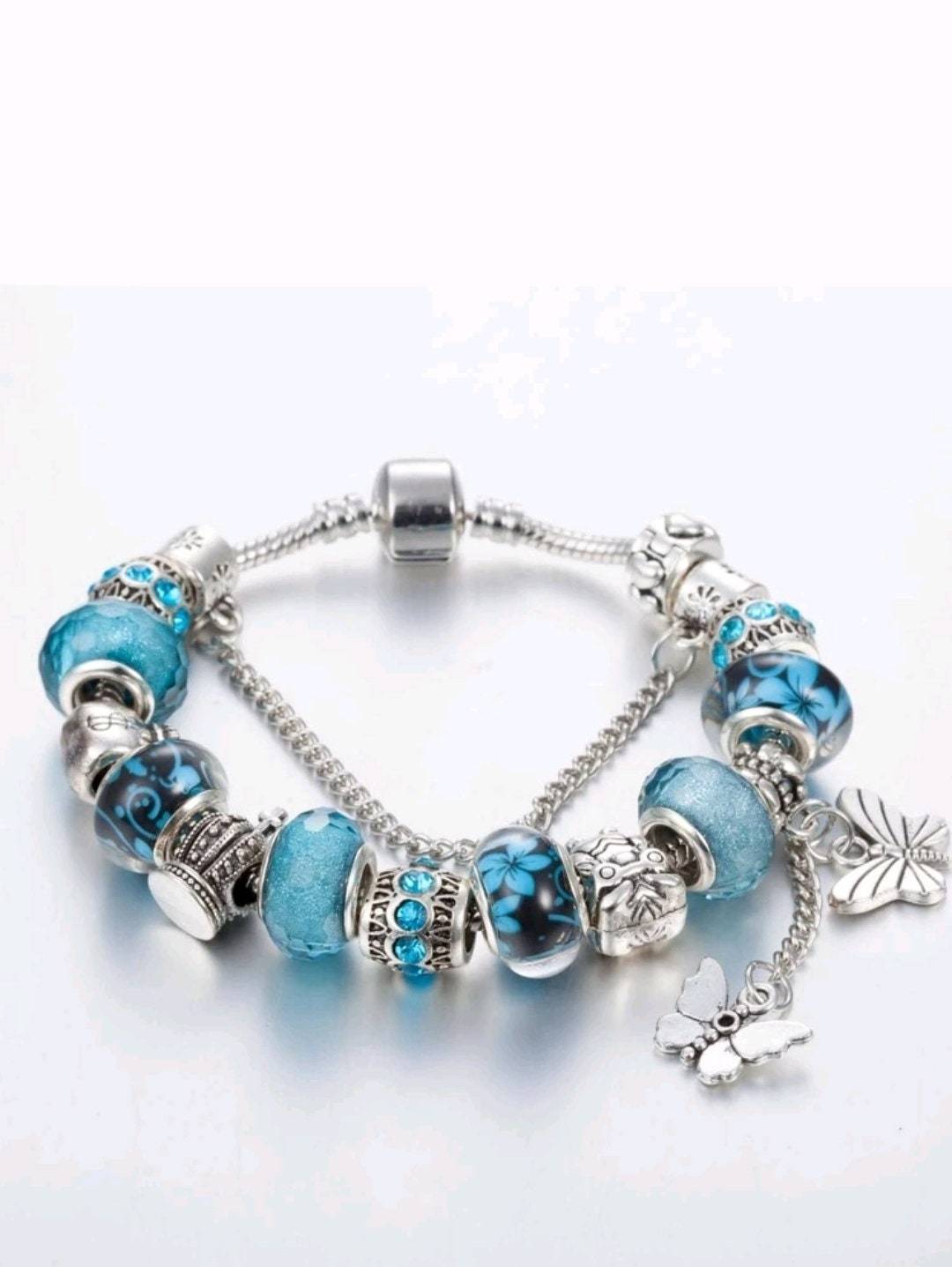 Blue Charms bracelet, bracelet with charms and strass, simil pandora bracelet, b