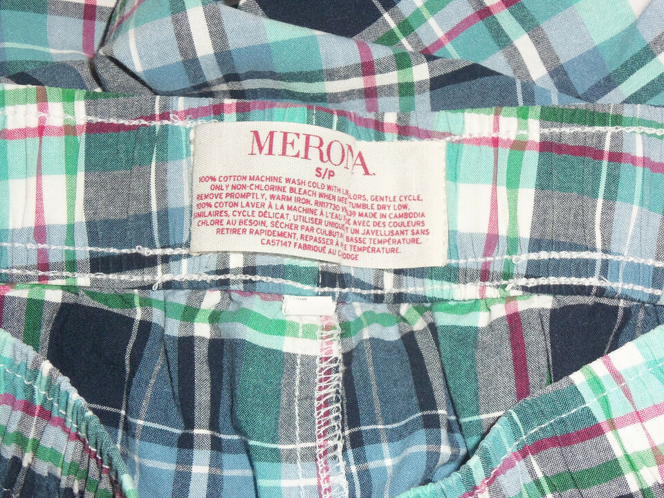 EXCELLENT MENS MERONA NAVY BLUE PLAID PAJAMA / LOUNGE PANTS SIZE S