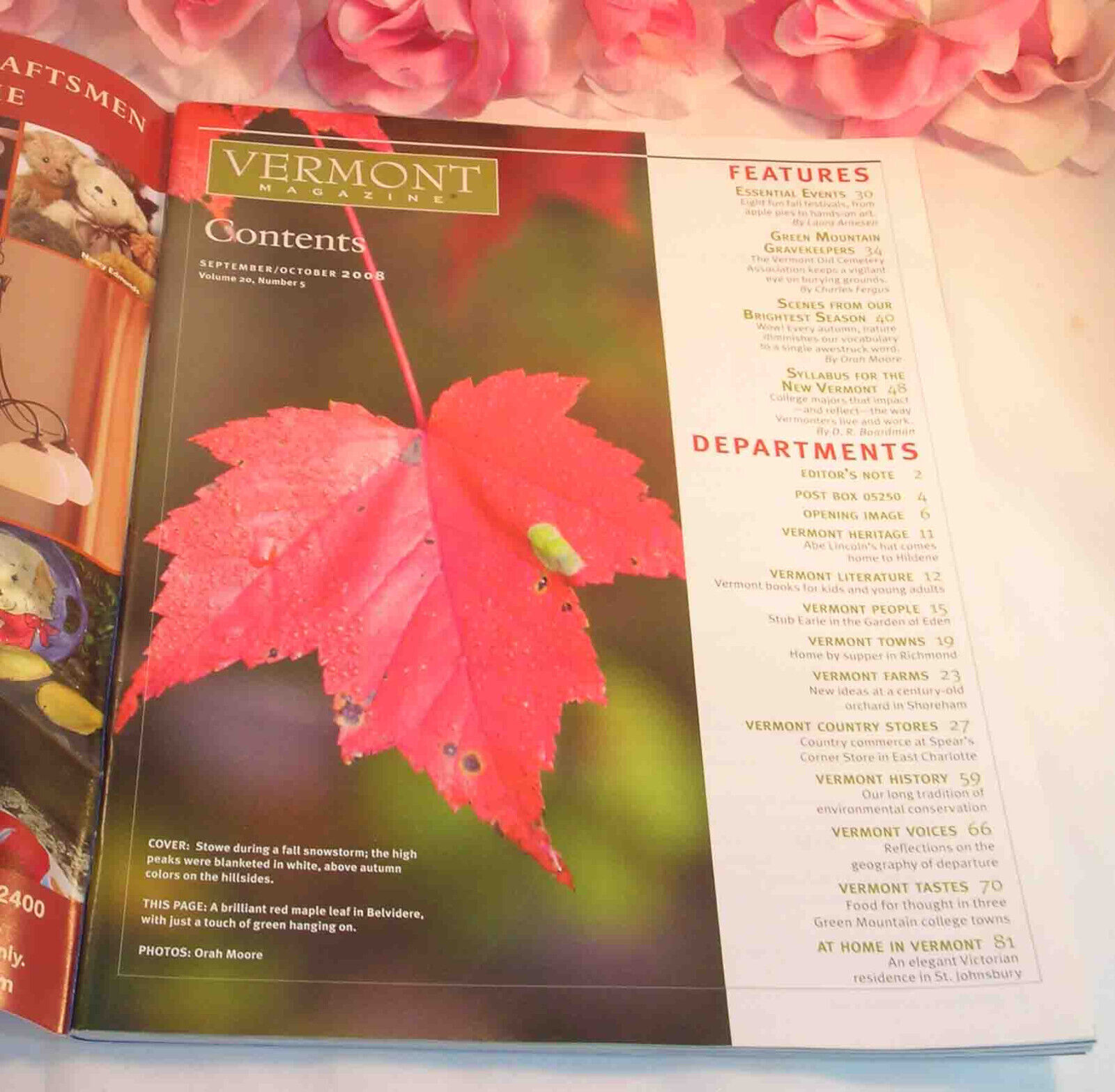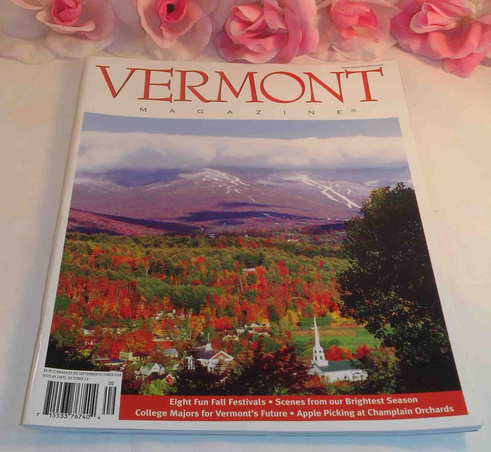 are buying a gently used Vermont Magazine. This magazine is from 2008 September October. Please look closely at the pictures for item condition. Articles in this issue are about eight fun Fall Festivals, Scenes from our Brightest Season, and Apple Picking at Champlain Orchards.