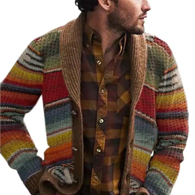 Western Sweater Cardigan Men's Knitwear Autumn Patchwork Merino Woolen Jacket