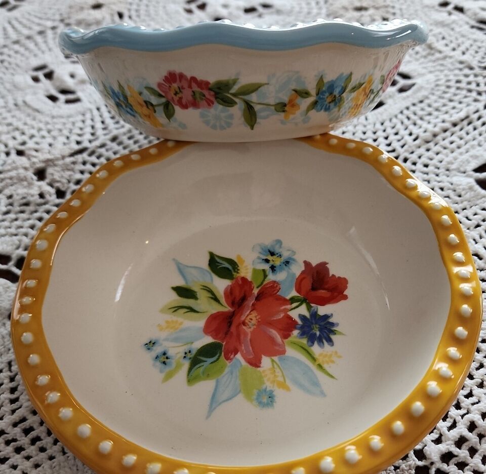 Two (2) Pioneer Woman ~ FLORAL MEDLEY ~ 5.5" Mini Pie Plates ~ Stoneware (1)