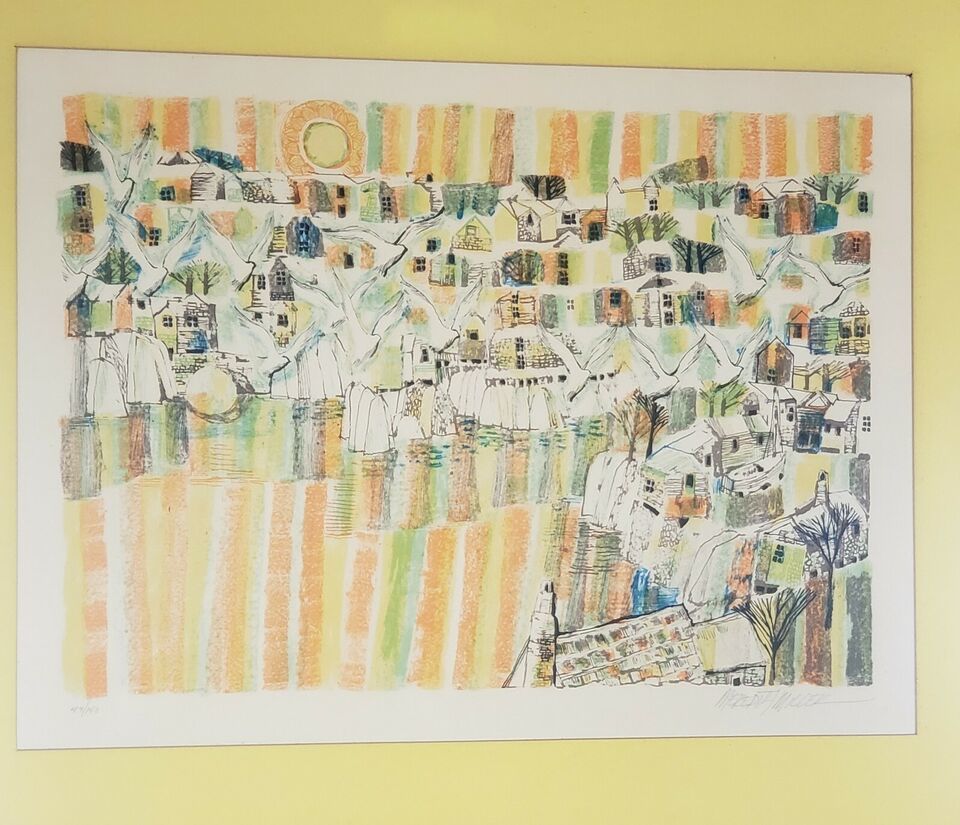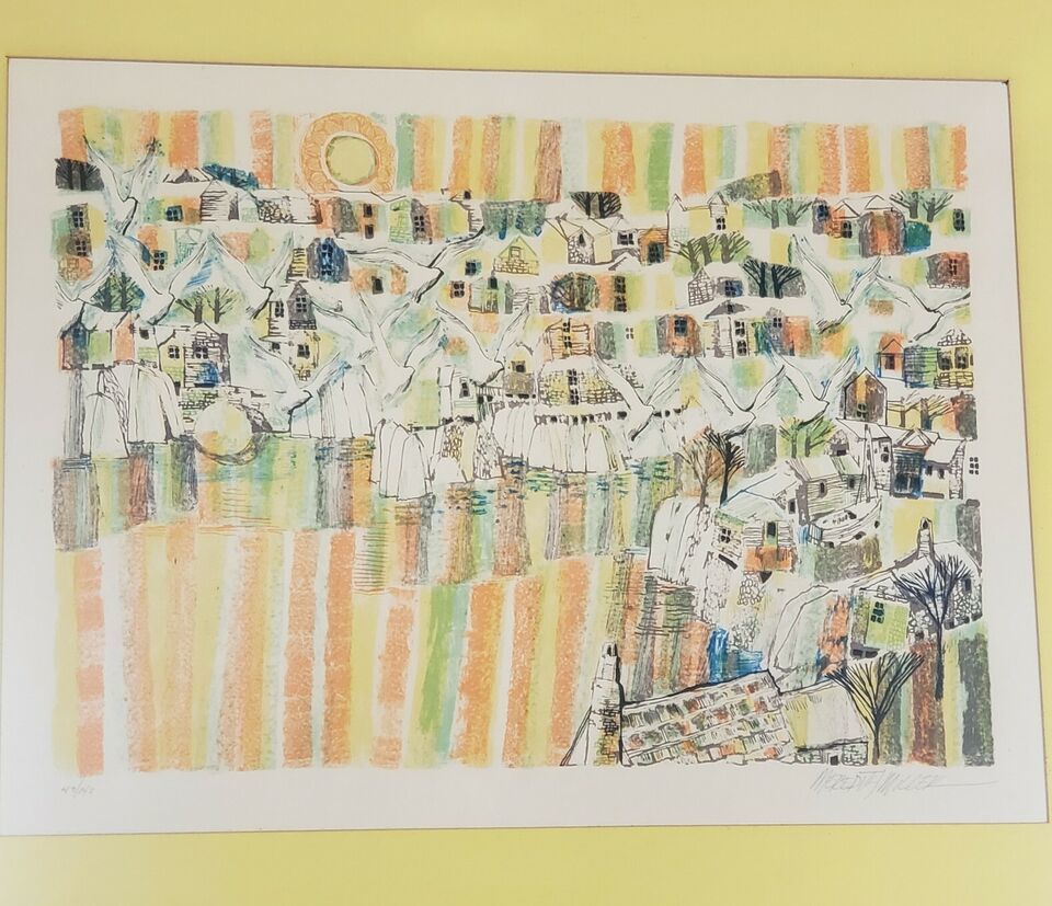 Rare MEREDITH MILLER Handsigned numbered 49/140 Vintage DOVES Lithograph Art. Print is in excellent condition as displayed in the photo gallery. Framed and matted. Vintage item circa 1970s. Frame measures 23 by 29 inches.