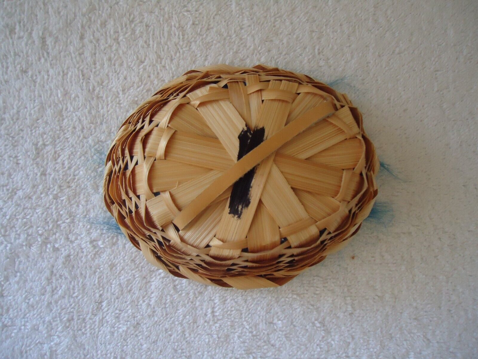 Vintage Small Native American Papoose Toy Figurine In Woven Basket " Great Item