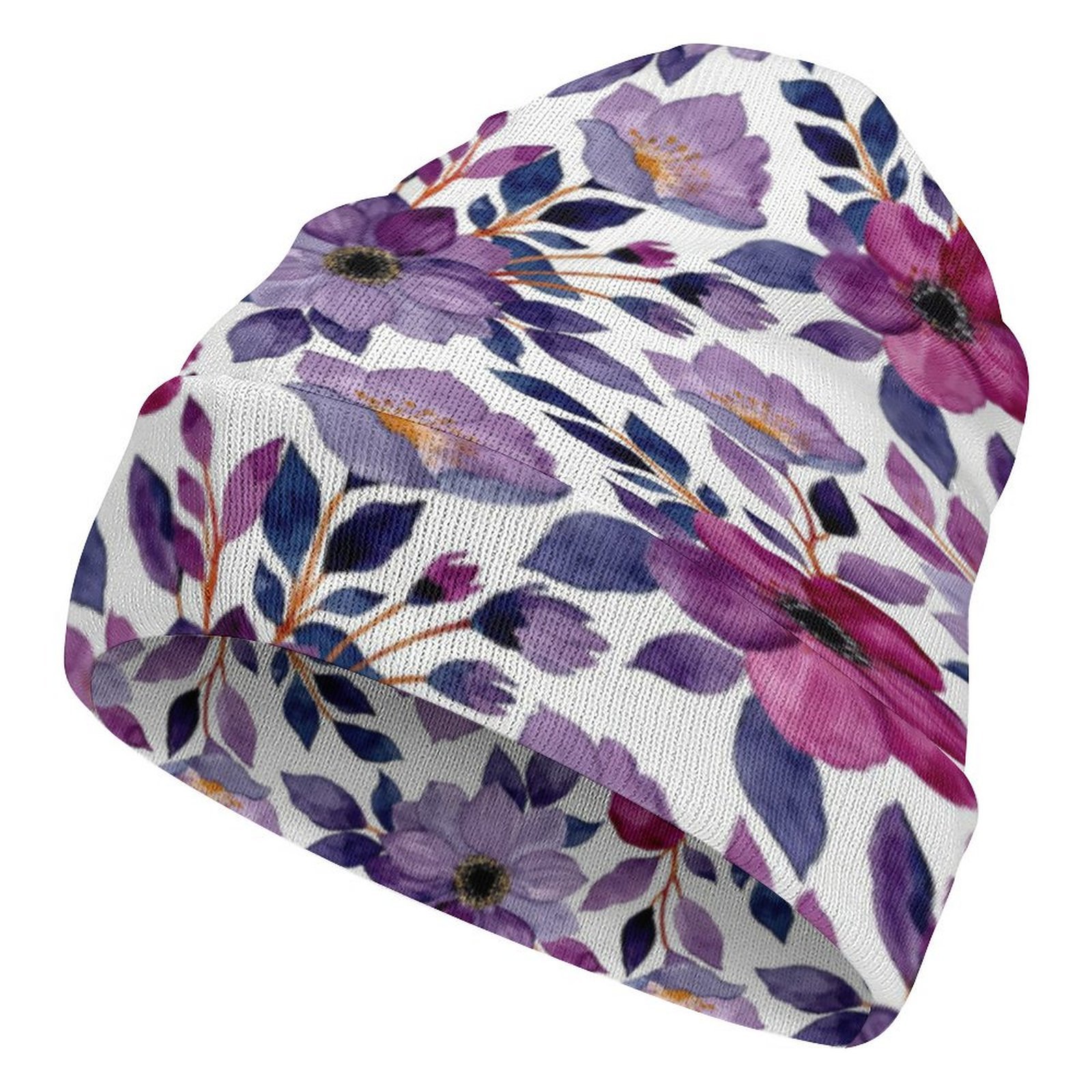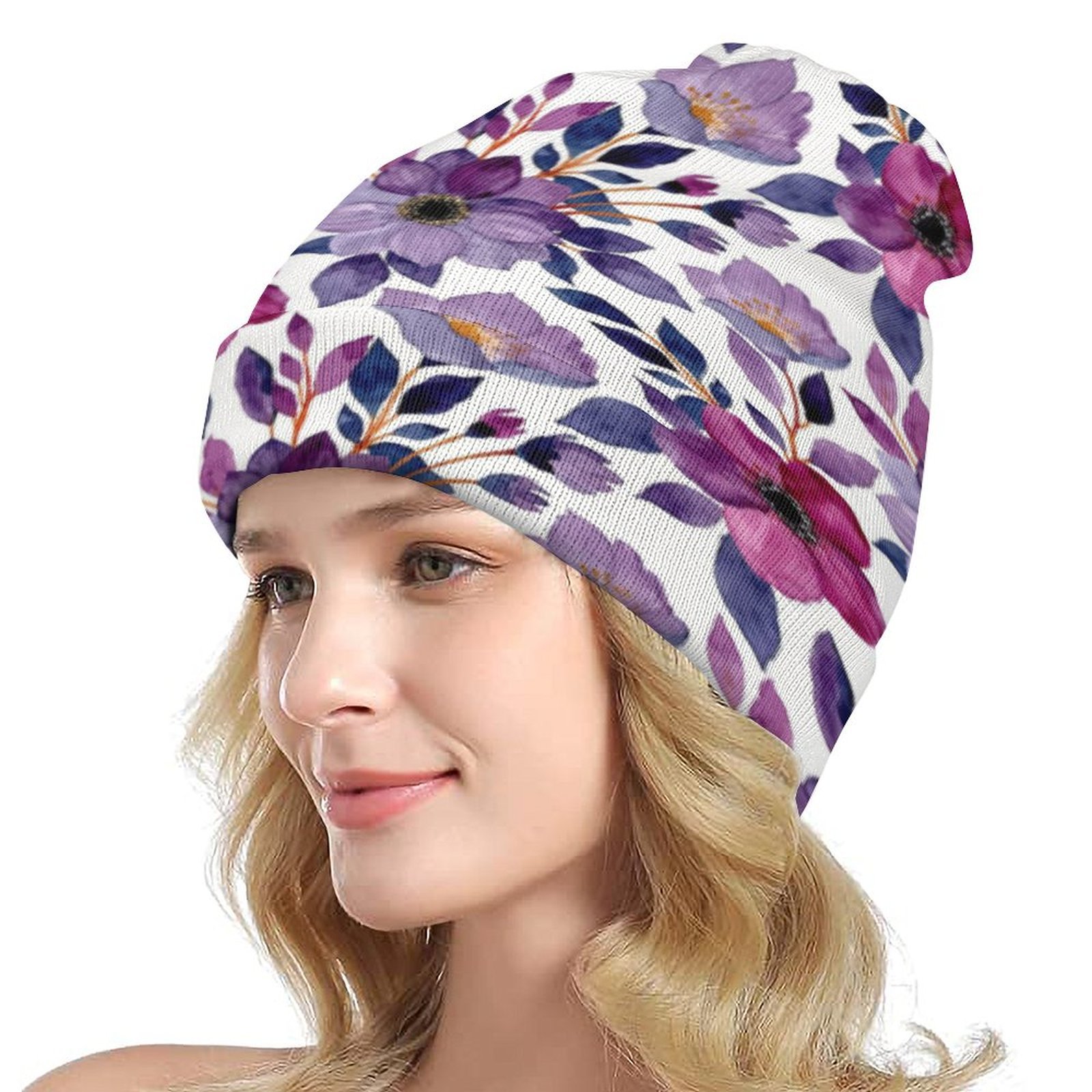 Mondxflaur Purple Floral Winter Beanie Hats Warm Men Women Knit Caps for Adults