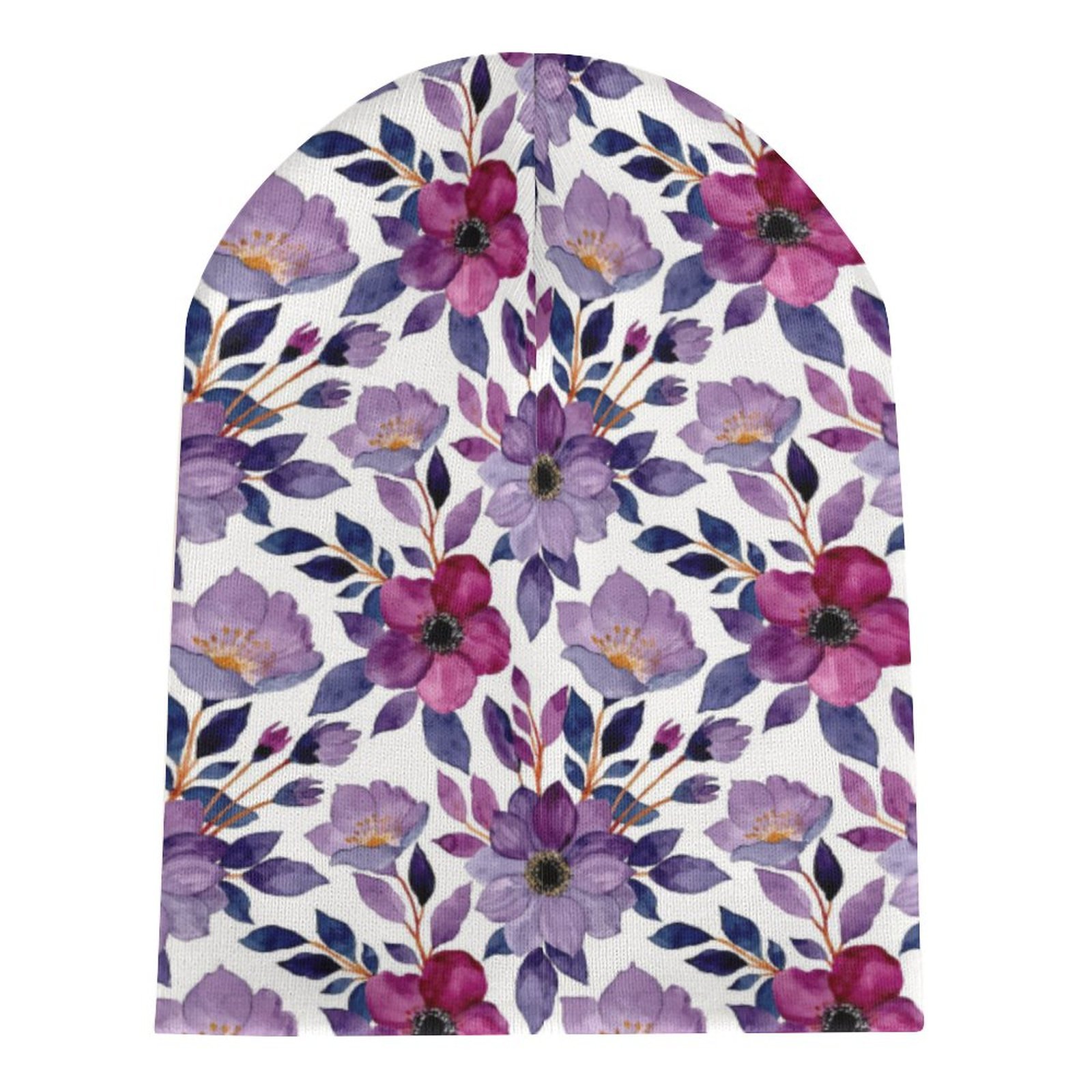 Colorful floral watercolor flowers beanie hats for men women warm winter knitting cap spring autumn.