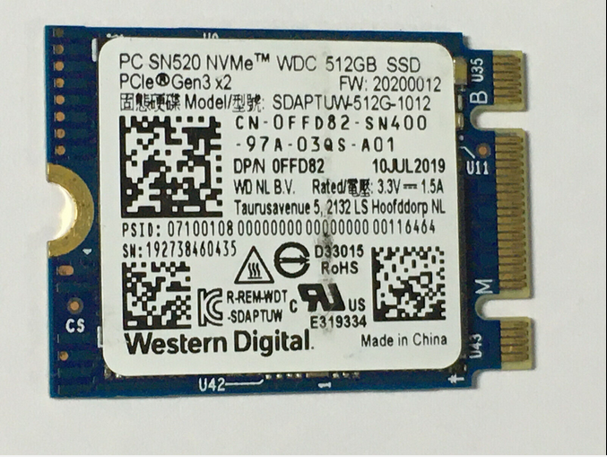 WD PC SN520 512GB SSD M.2 2230 NVMe SDAPTUW-512G-1012 512GB PCle Gen3x2 SSD