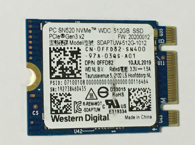 Western Digital PC SN520 NVMe PCle Gen3x2 SSD SDAPTUW-512G-1012 512GB M.2 2230