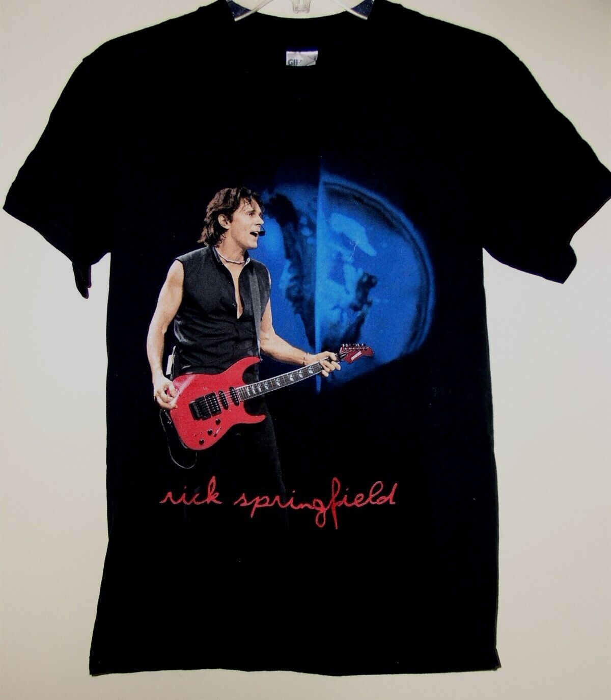 This is a vintage concert tour t shirt entitled, "Rick Springfield The Day After Yesterday". Assumed to be a concert tour shirt but uncertain. Tag reads: Gildan Activewear Ultra Cotton Heavyweight. A terrific item for the fan or collector.