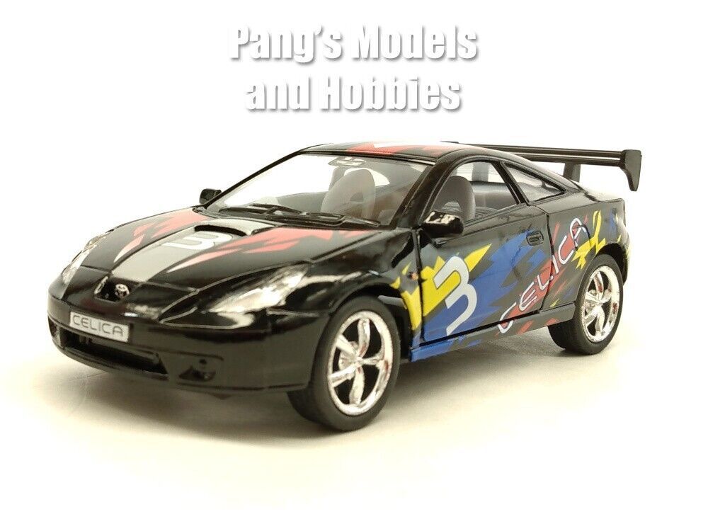 The Toyota Celica by Kinsmart measures about 5 inches long by about 2 inches wide by about 1.5 inches high. It has very nice details such as separate clear plastic headlights and taillights.