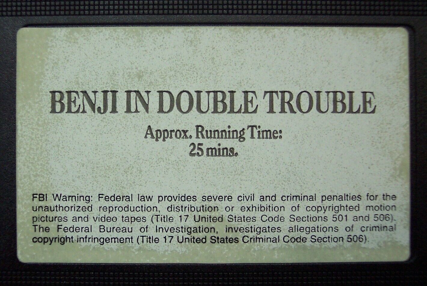 This is a VINTAGE BENJI Double Trouble VHS VIDEO From 1973. It has a runtime of 25 minutes. It is in good condition. The cardboard sleeve has slight wear from use, but nothing major. Combine auctions to save on shipping. EAG