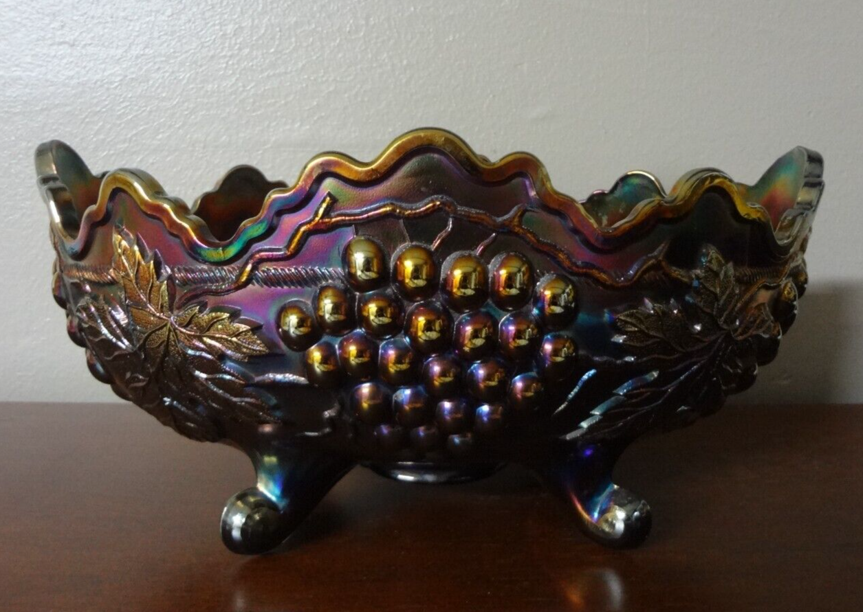 CARNIVAL GLASS GRAPE CABLE BANANA BOAT AMETHYST BY: NORTHWOOD