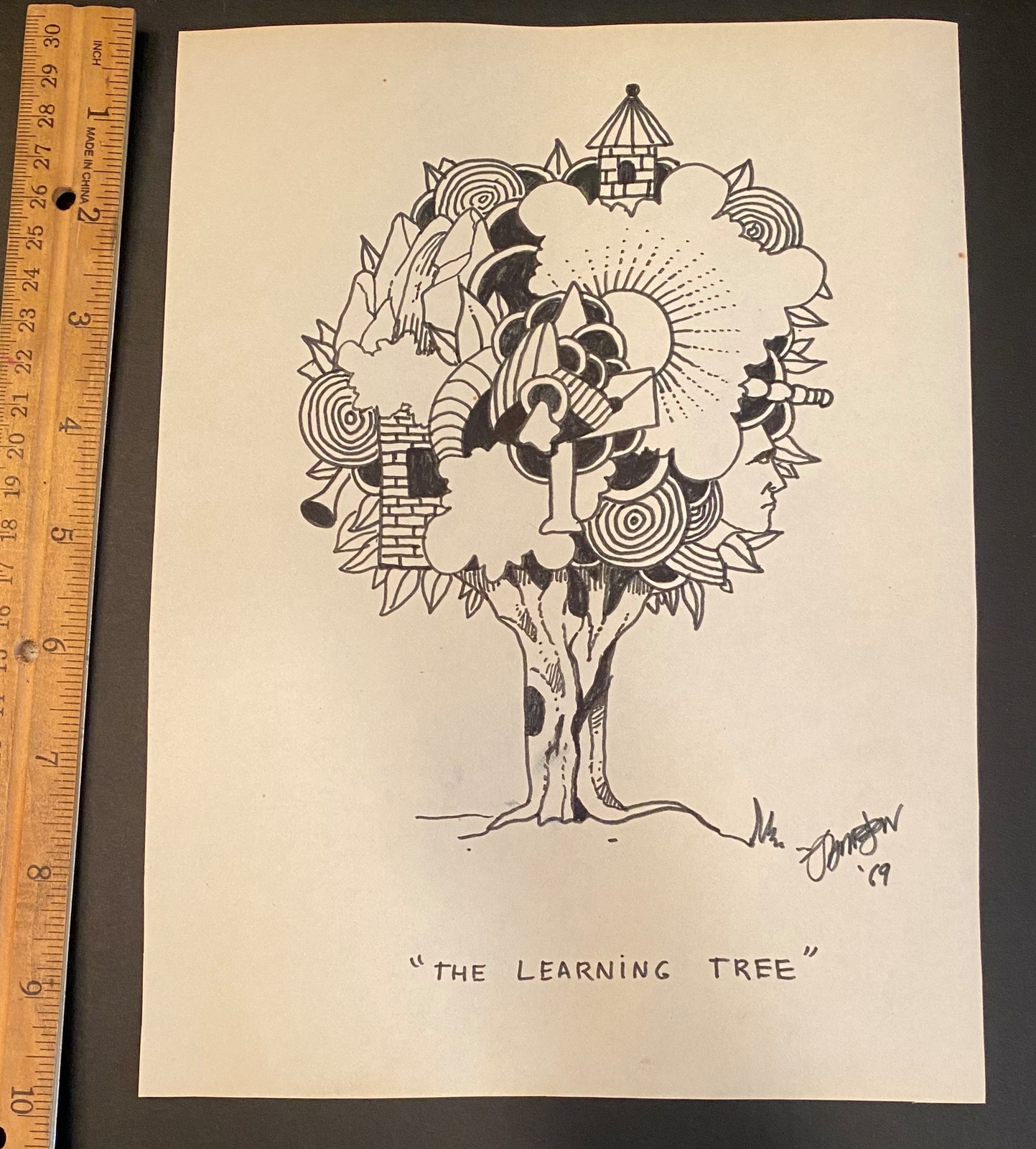 Bill Jameson Surrealism Drawing "The Learning Tree" 1969