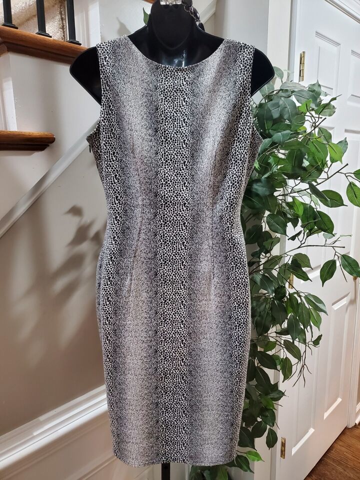 Nine West Women's Gray Polyester Round Neck Sleeveless Knee Length Dress Size 6.