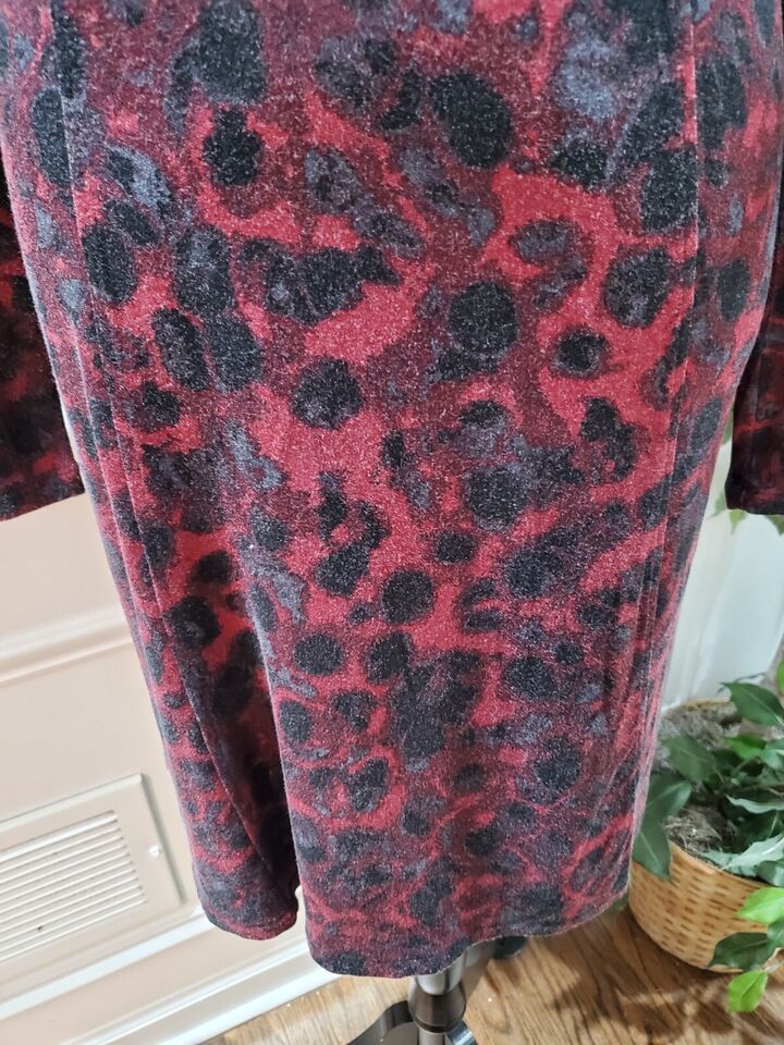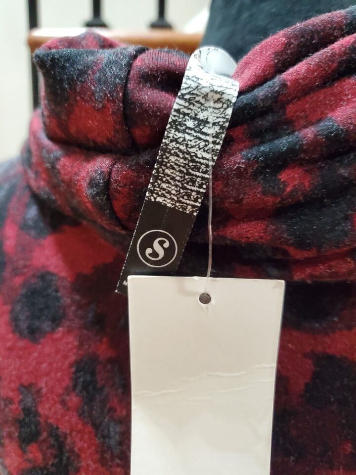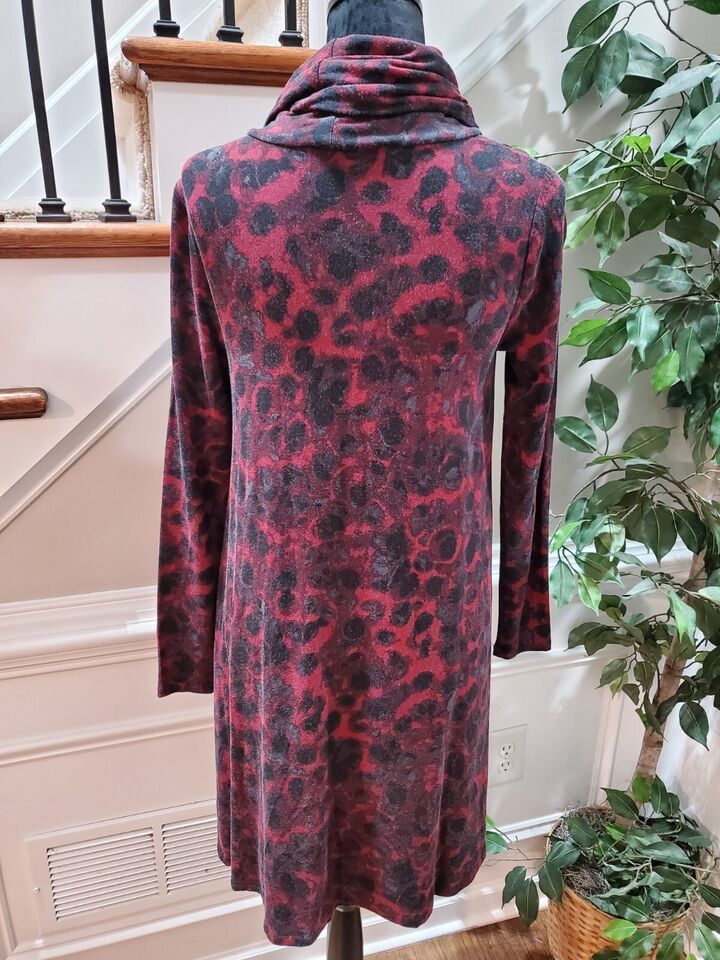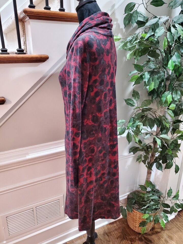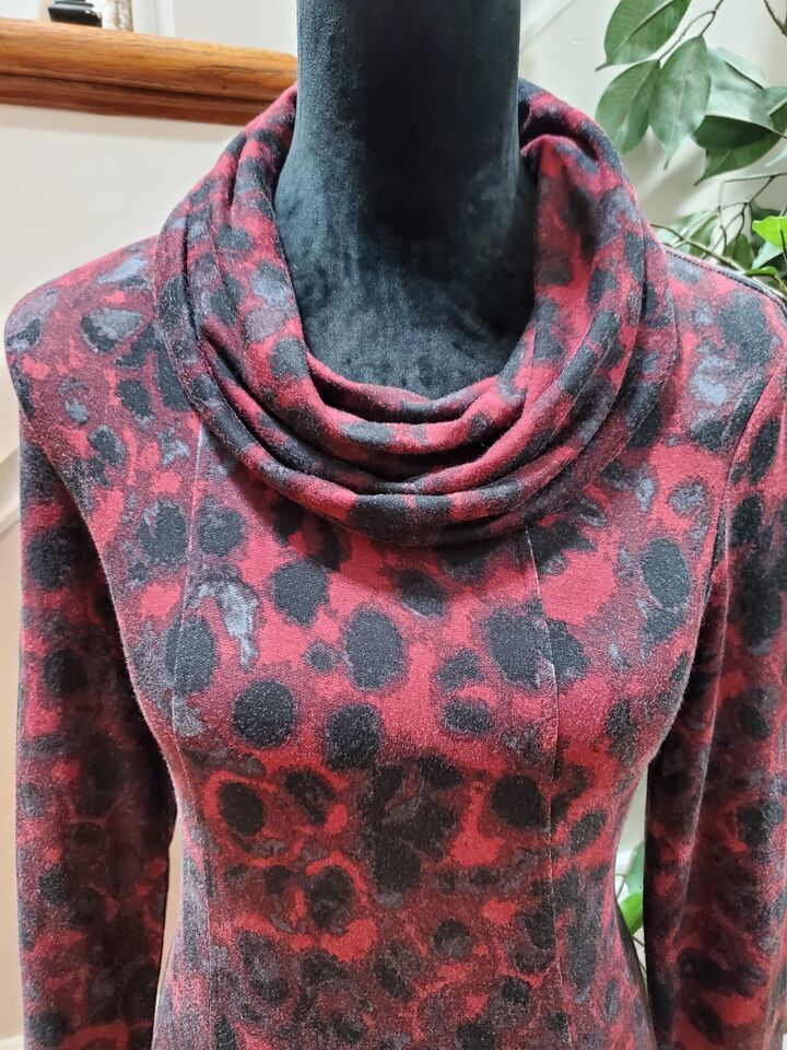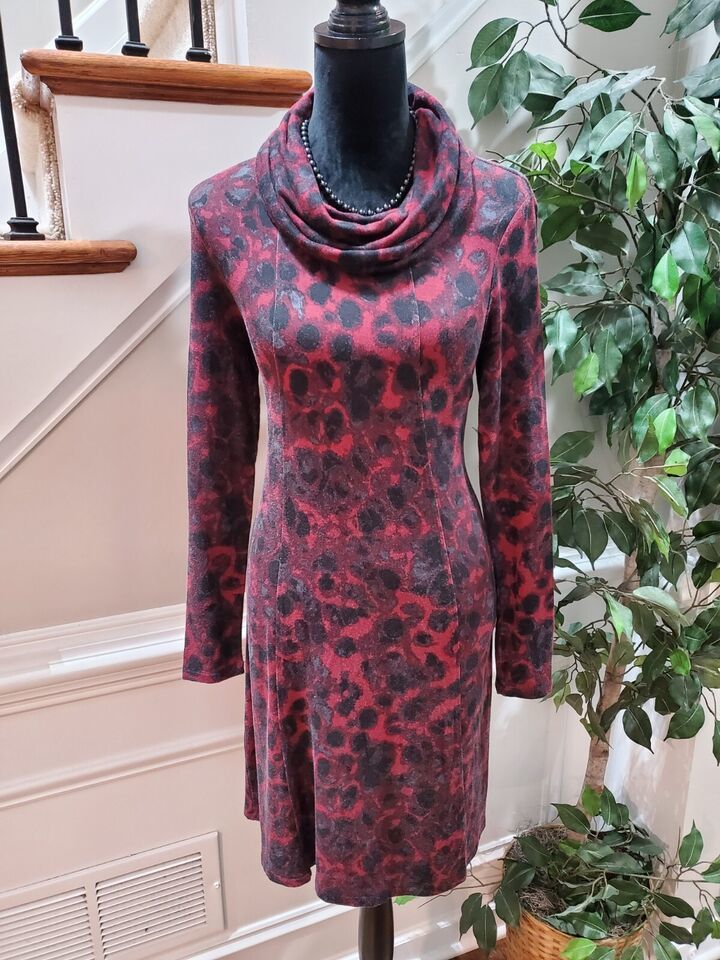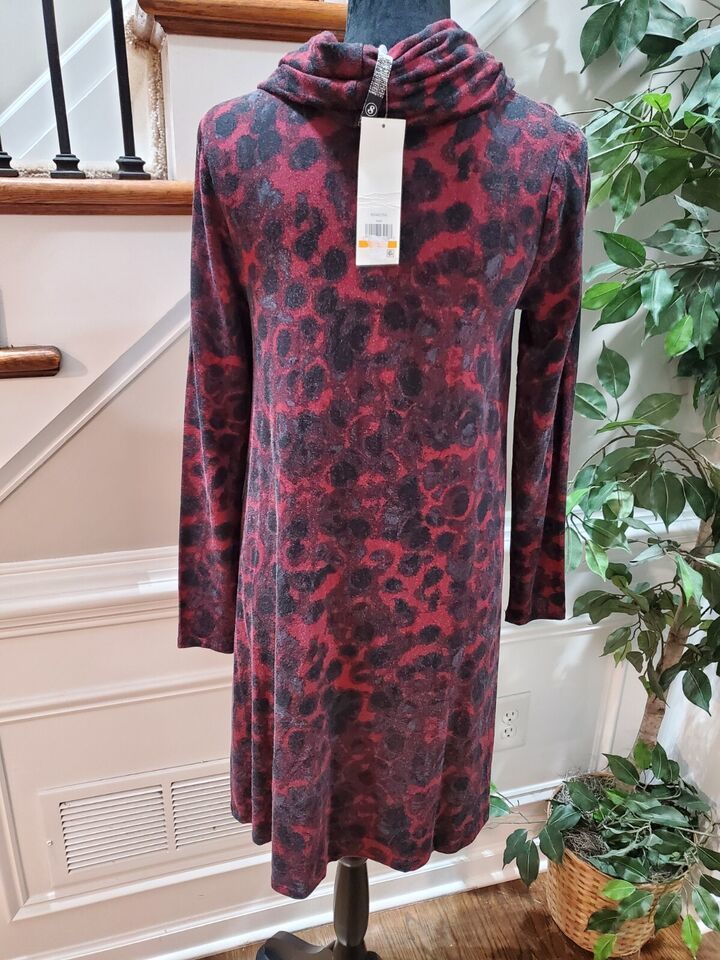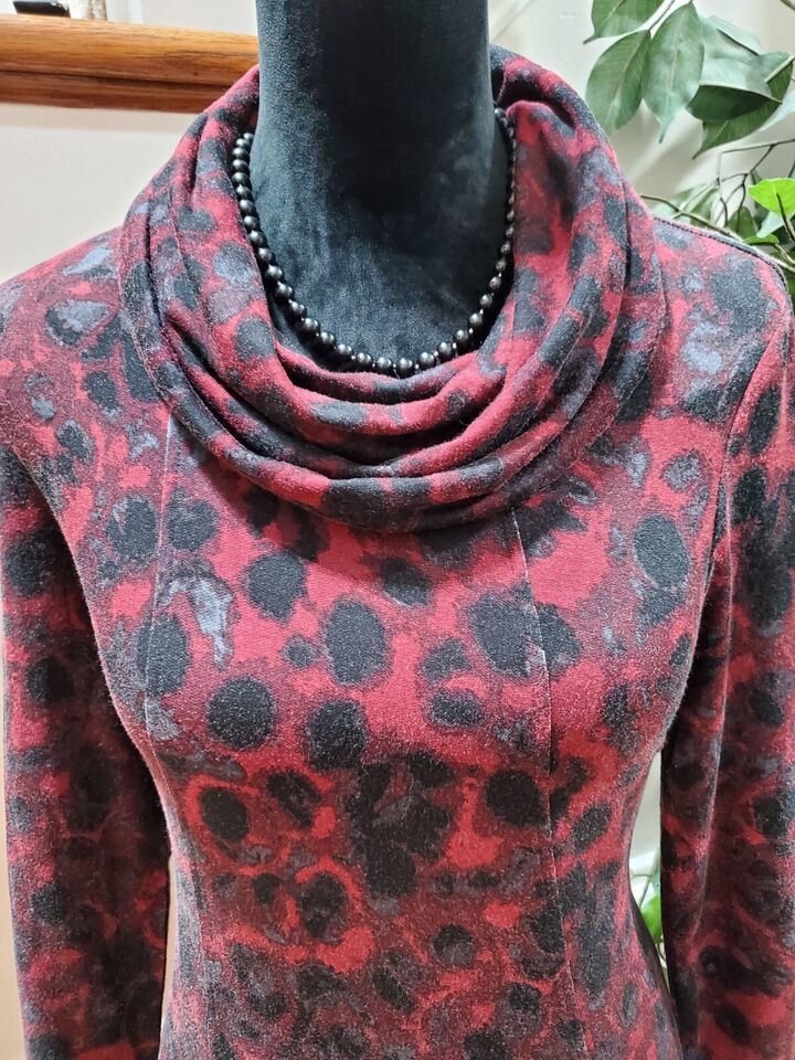 Kensie Women's Red Black Viscose Cowl Neck Long Sleeve Knee Length Dress Small.