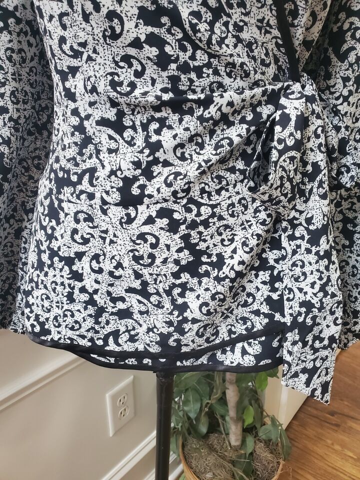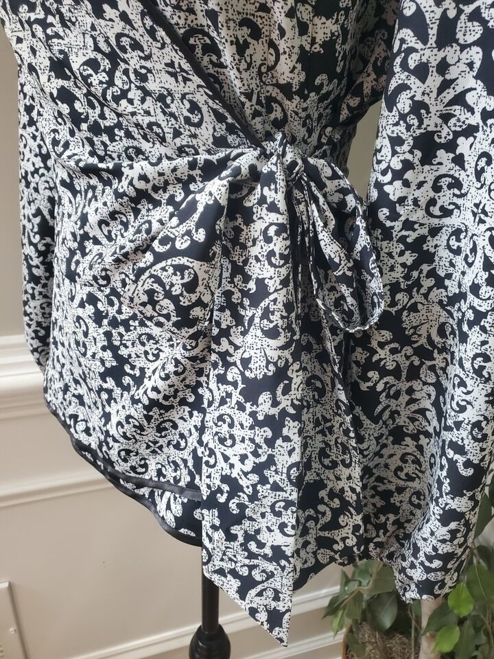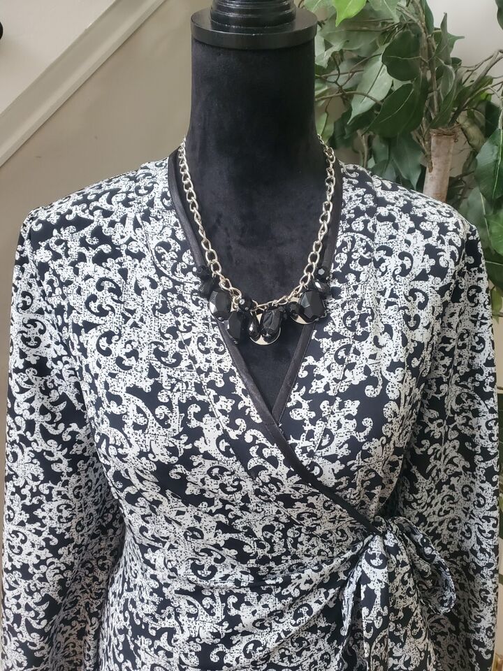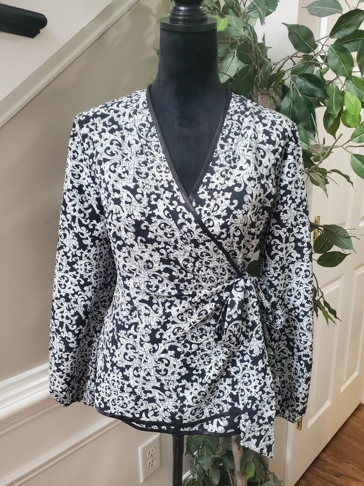 Norm Thompson Women's White Black Polyester V-Neck Long Sleeve Top Blouse 10.