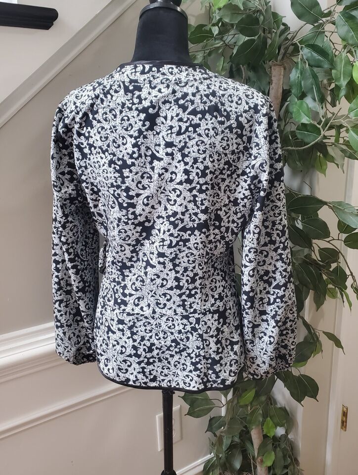 Norm Thompson Women's White & Black Polyester V-Neck Long Sleeve Top Blouse 10