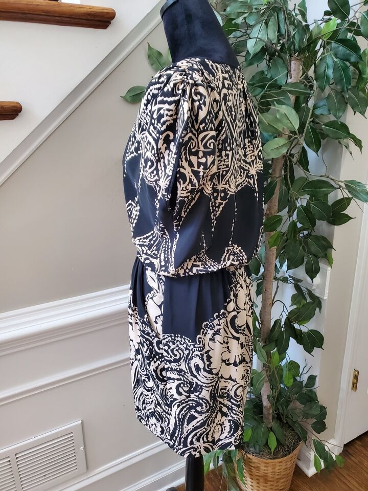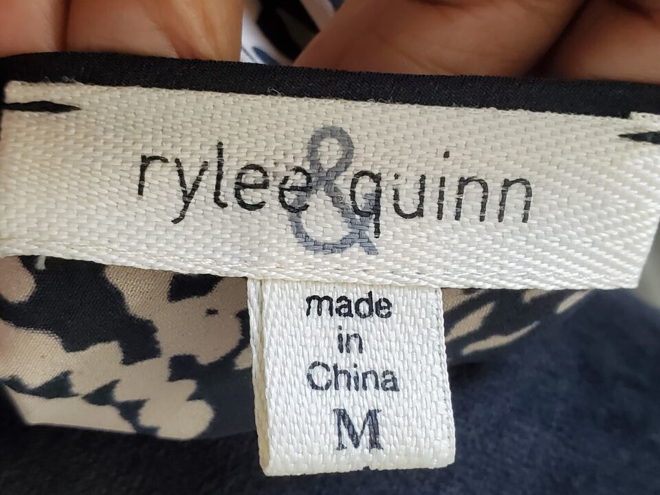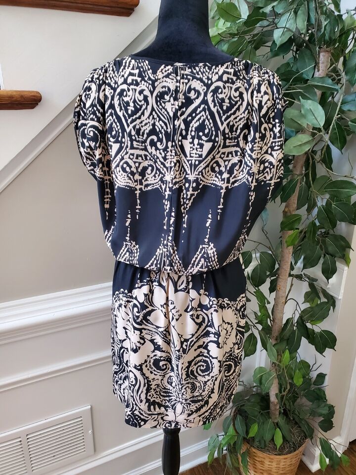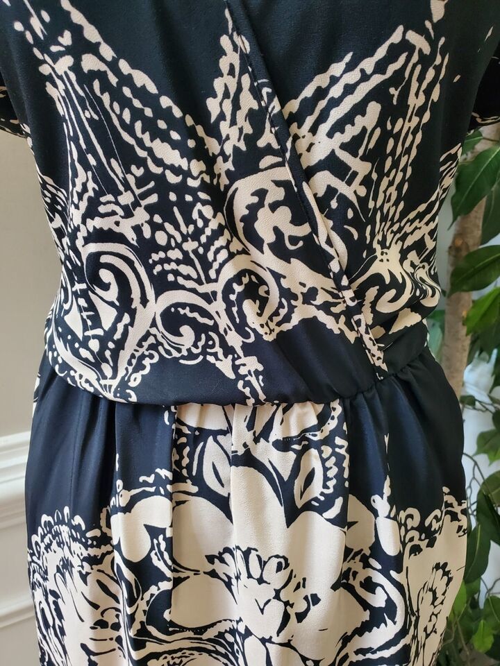 Rylee & Quinn Women Black Cream Floral Polyester V-Neck Knee Length Dress Medium