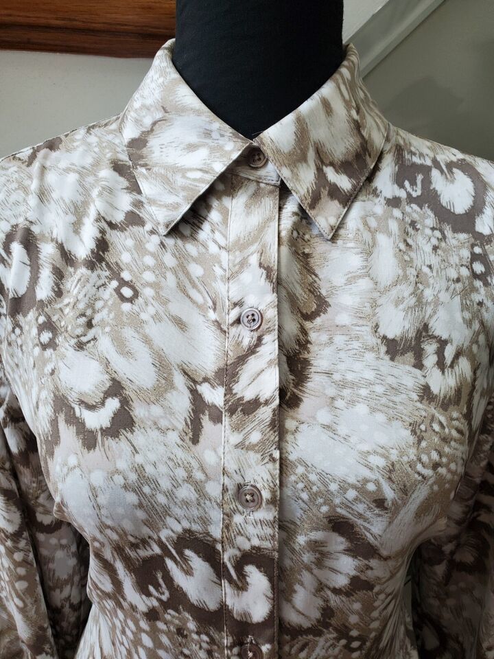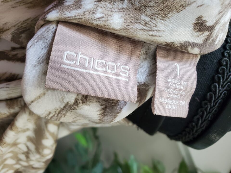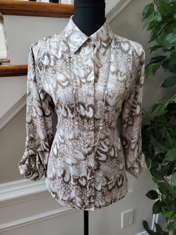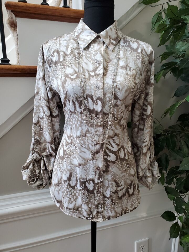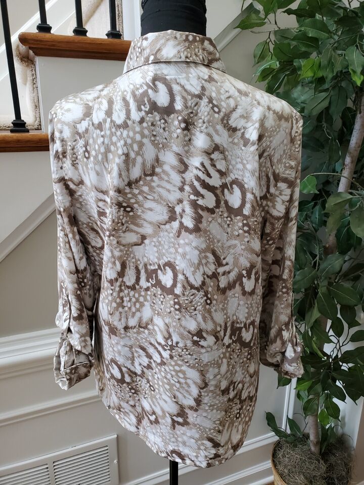 Chico's Women's Multicolor 100% Polyester Collared Long Sleeve Casual Blouse 1.