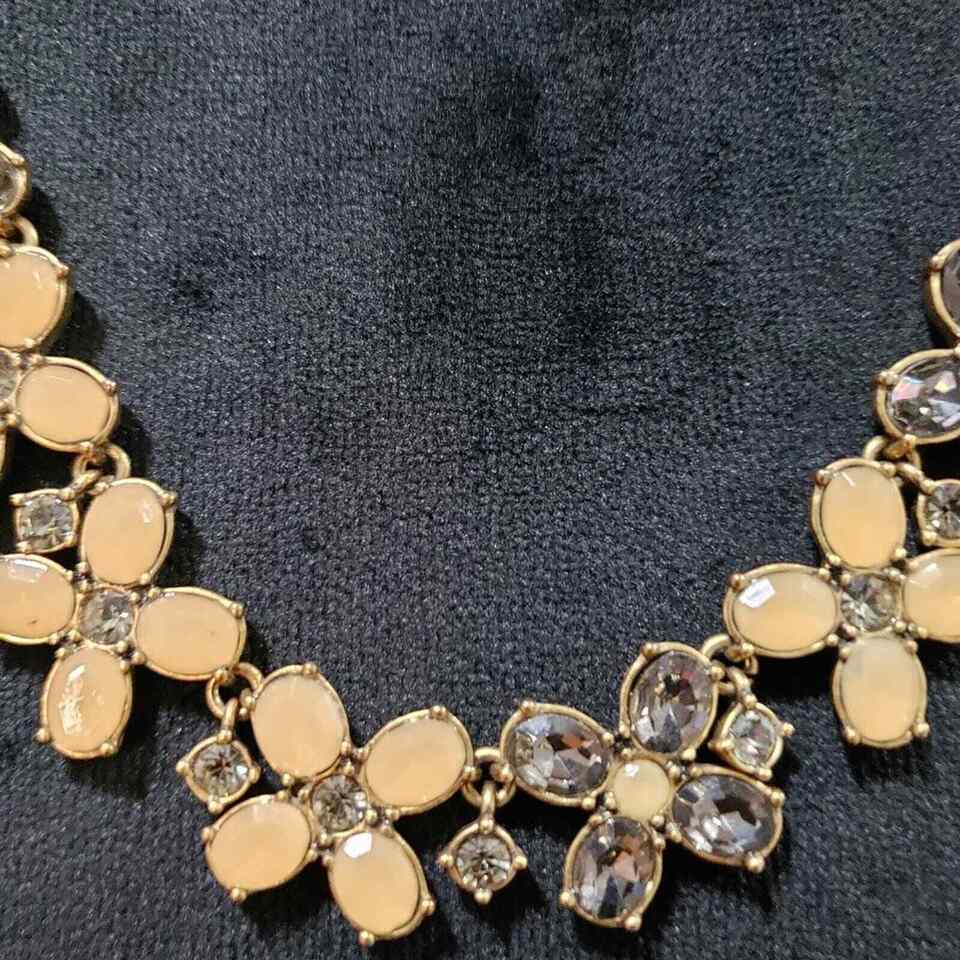 J. Crew Lucite Rhinestone Four Leaf Flower Necklace Gold Tone Necklace