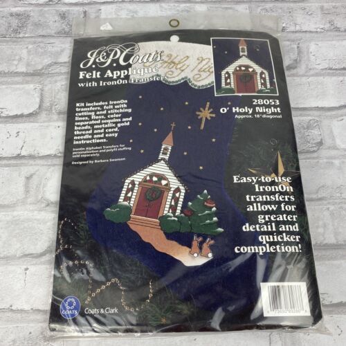 JP Coats Felt Applique w/ Iron On Beads Sequins Stocking Kit O' Holy Night 28053