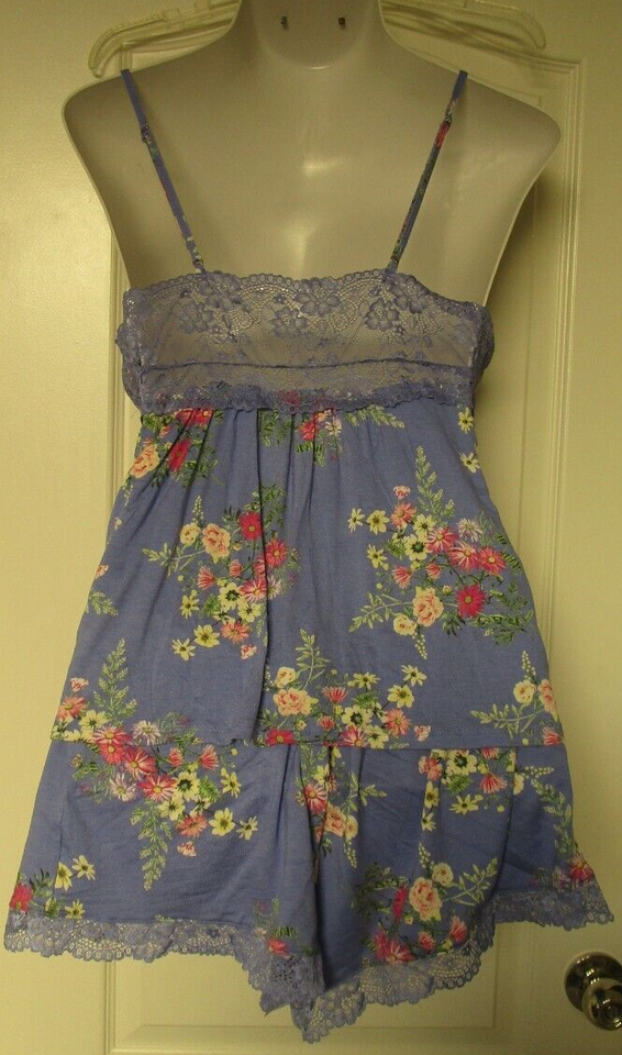 INC Blue floral print two-piece Pajama Set (camisole & tap pant) Size Large