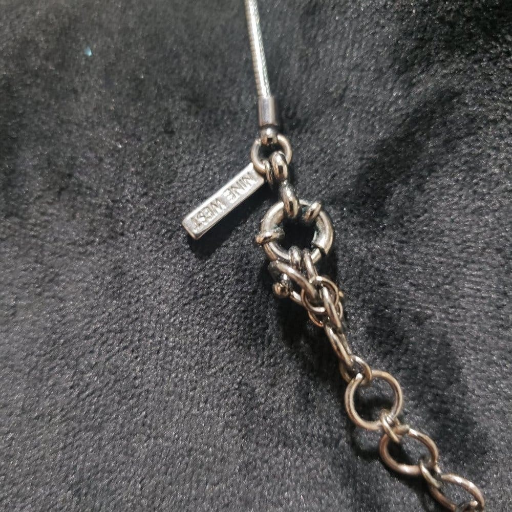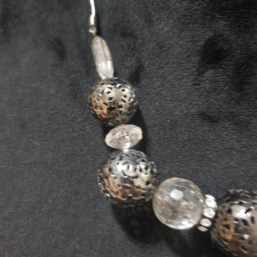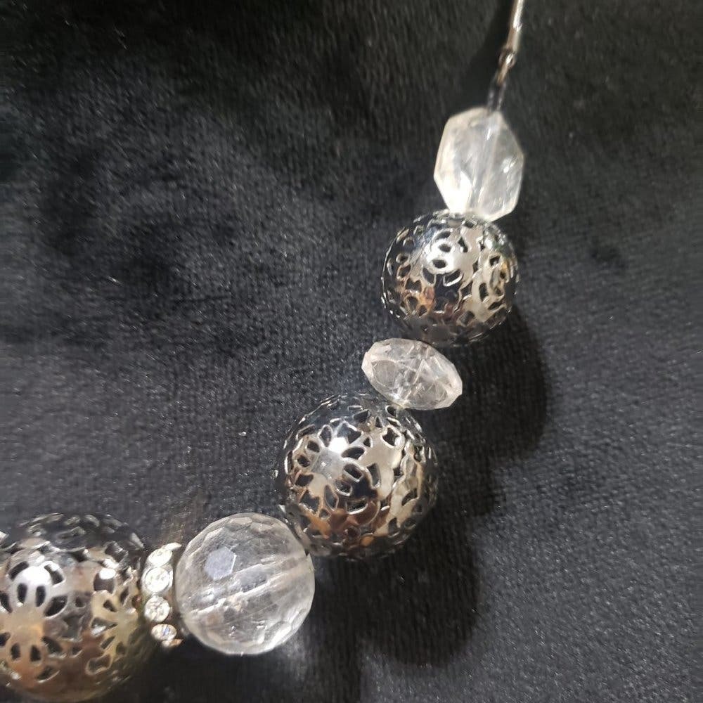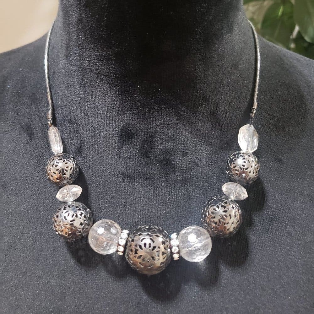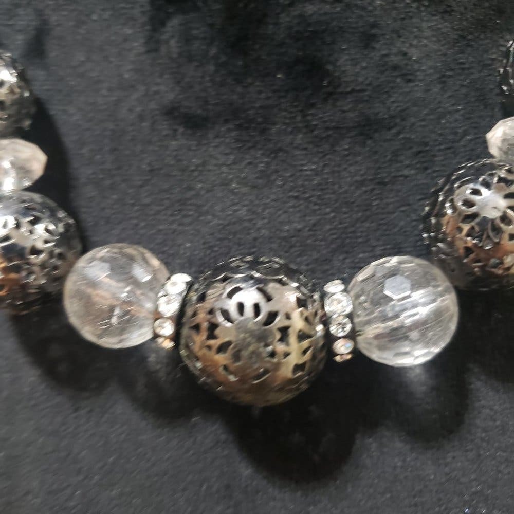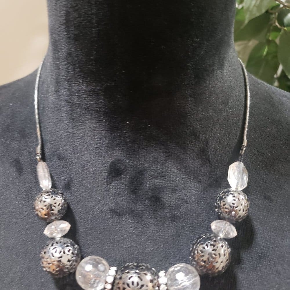 Nine West Chunky Silver Tone Filigree Look Ball Clear Rhinestone Collar Necklace