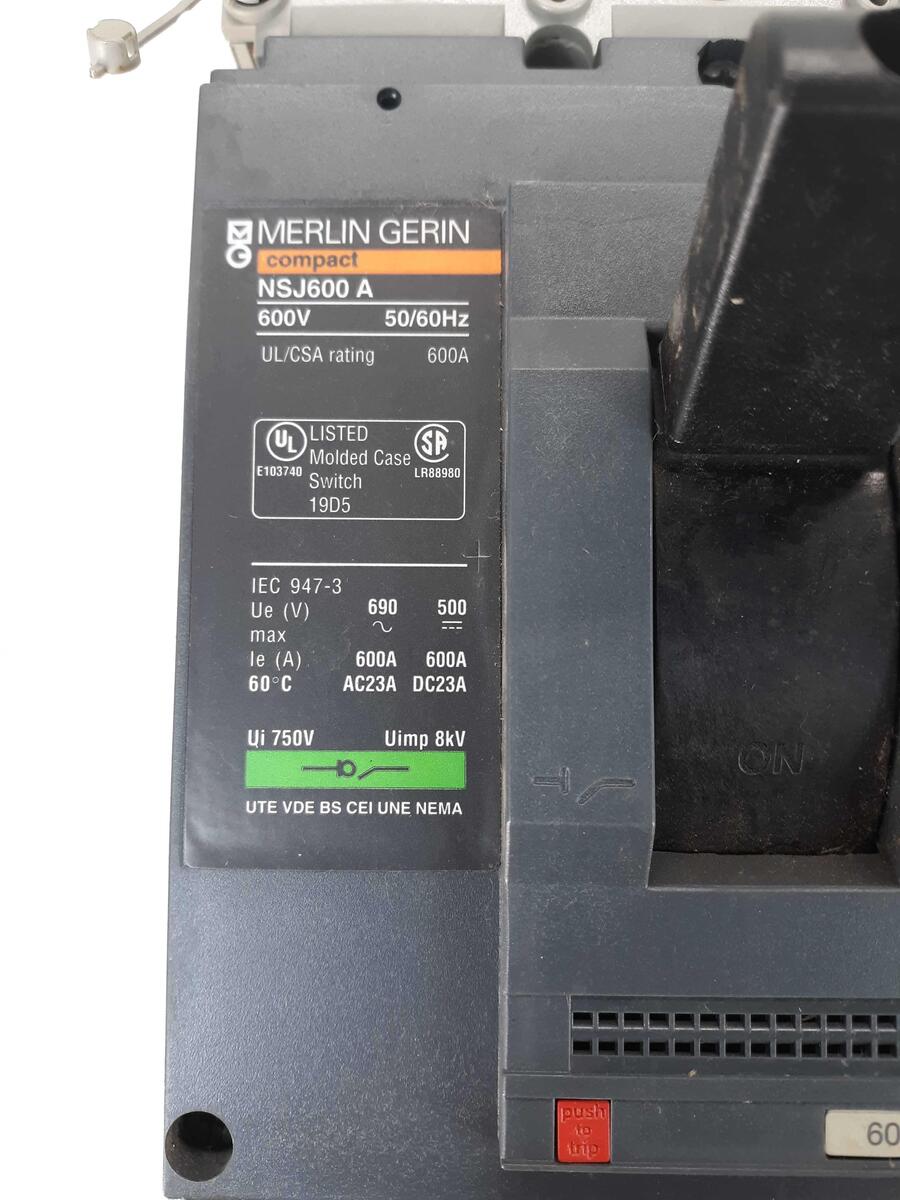 Merlin Gerin NSJ600 A 3-Pole Circuit Breaker W/Mounting Base 600V 600Amp