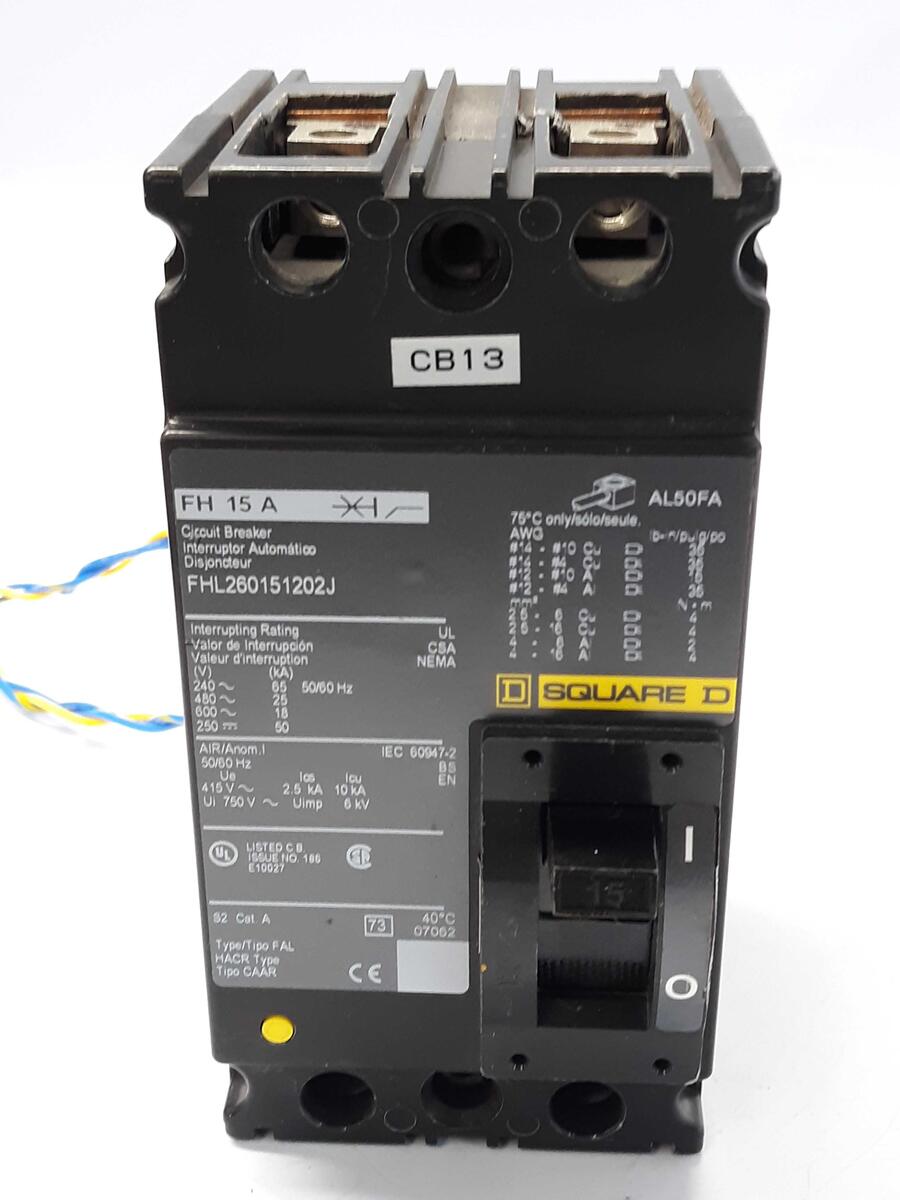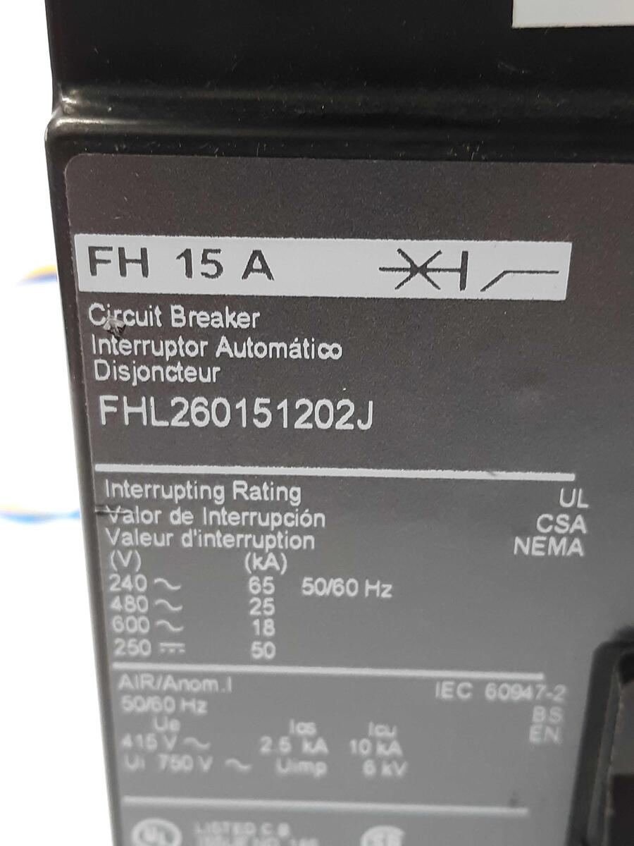 Fuji Electric FHL260151202J 2-Pole Circuit Breaker, 600V 15Amp W/Internal Aux.